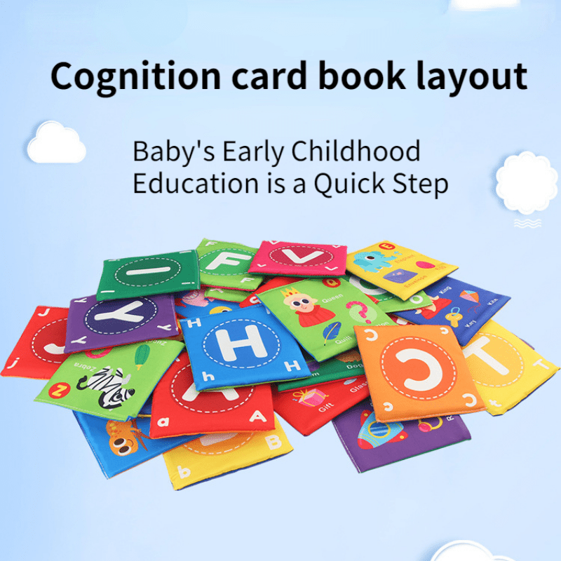 Set of 26 Educational Cloth Books for Kids Animal Letters and Numbers with Washable Storage Bag