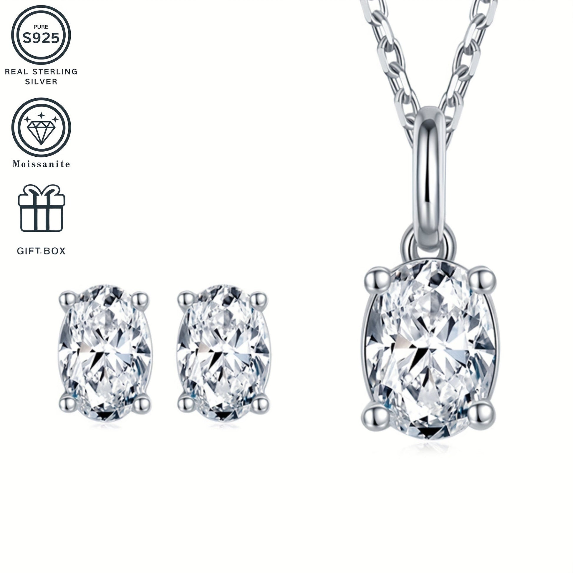 Set of 3 Sterling Silver Moissanite Jewelry Pieces with 2CT+1CT Stones for Weddings and Gifts