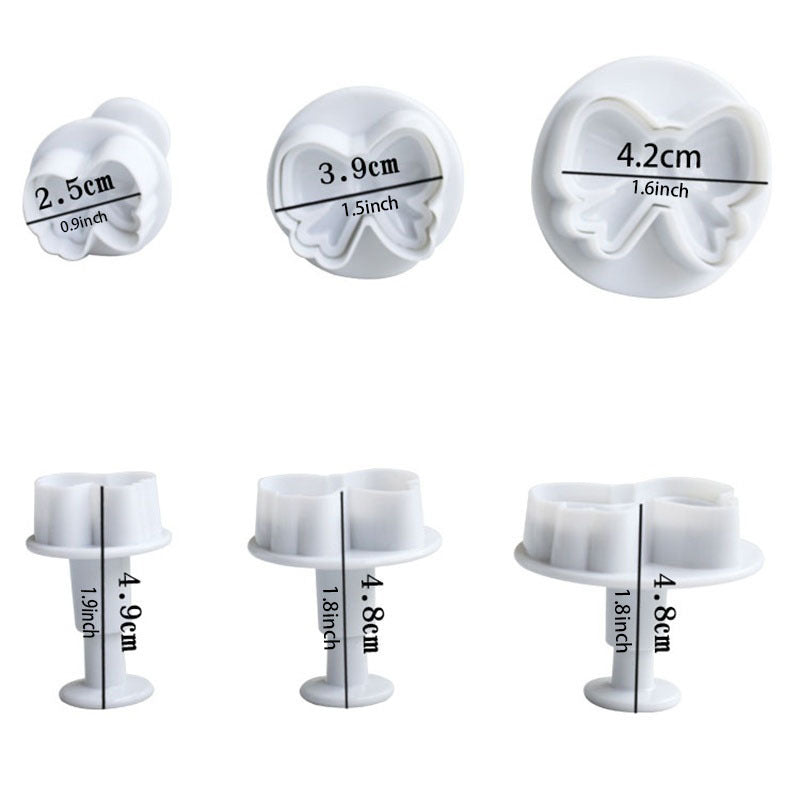 Set of 3 Bow Shaped Fondant Molds Cookie Cutters Baking Tools