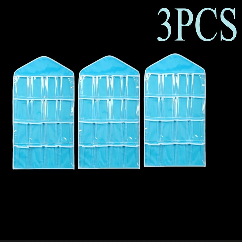 Set of 3 Hanging Storage Bags with 16 Pockets for Socks Underwear and Accessories Space-Saving Wardrobe Organizer