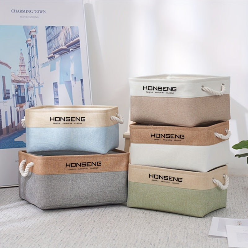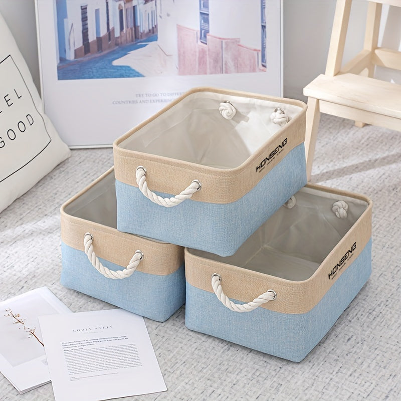 Set of 3 Large Linen Storage Baskets for Clothing, Toys, and Books