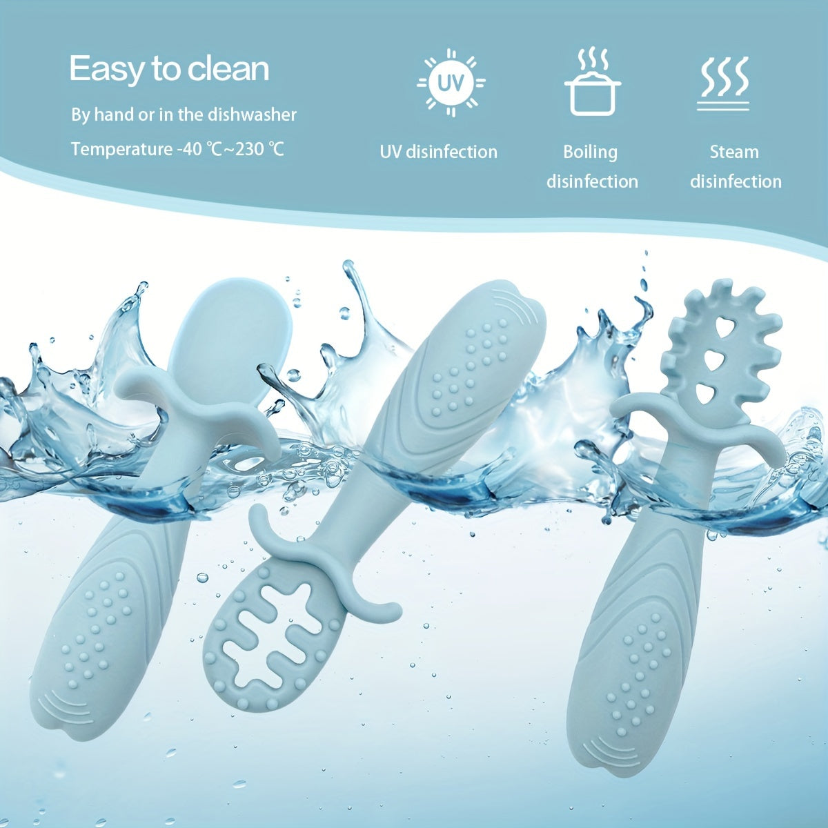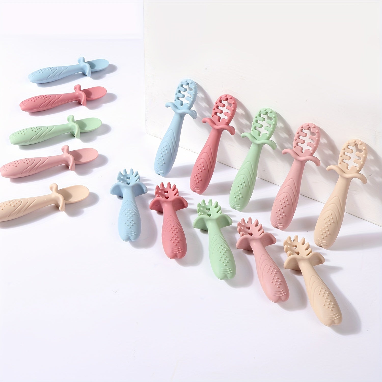 Set of 3 Soft Feeding Tableware for Toddlers Silicone Rice Paste Spoon and Fork