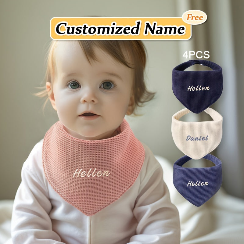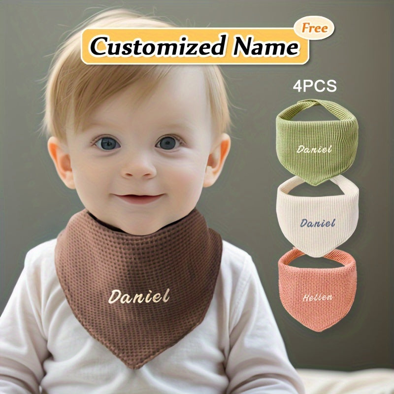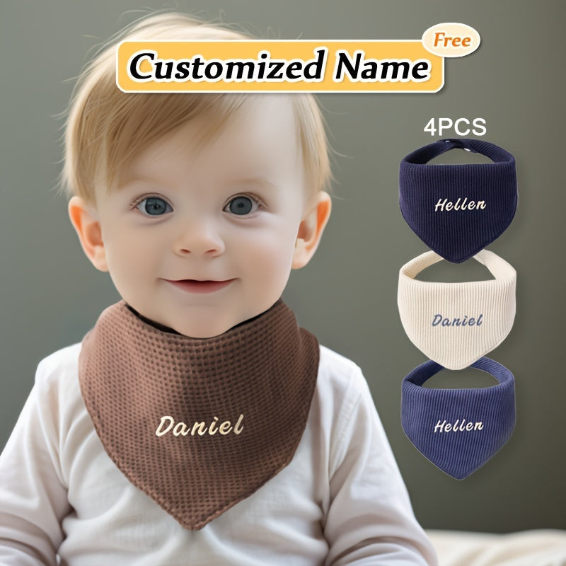 Set of 4 Children's Saliva Towels with Triangle Towel and Adjustable Mouthguard Soft Breathable Natural Material