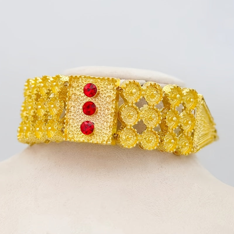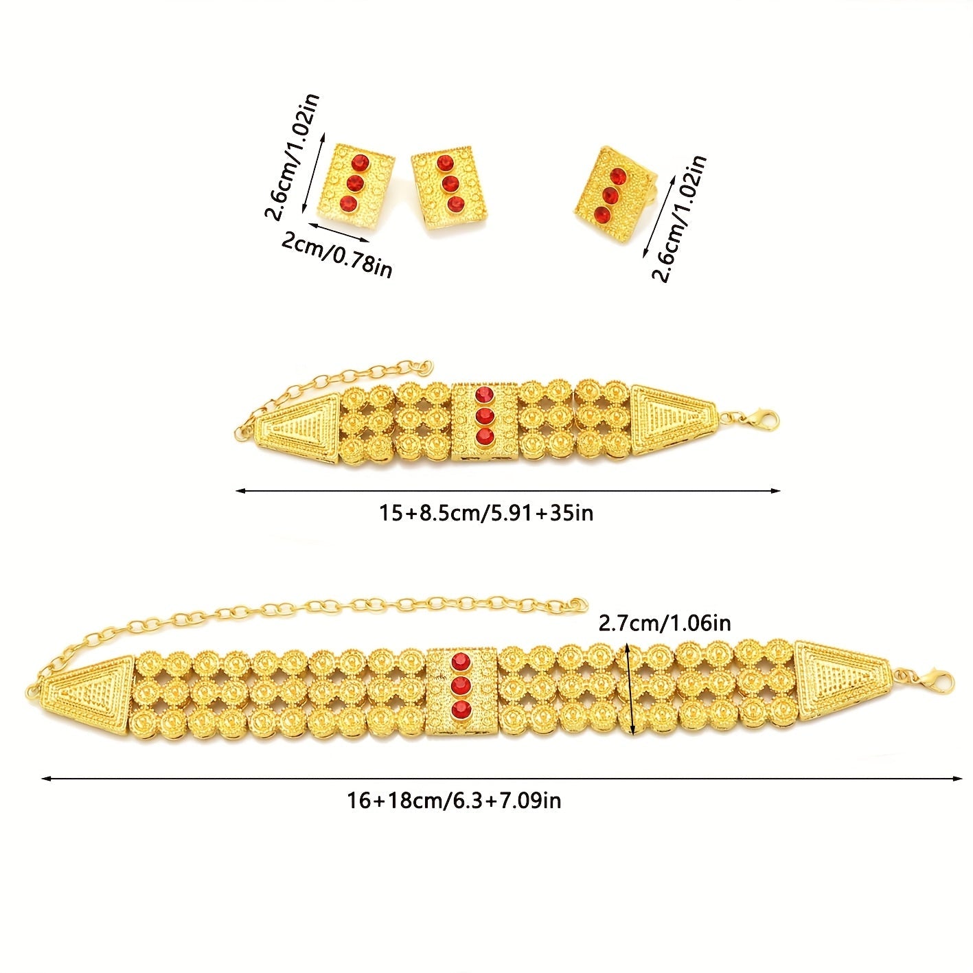 Set of 4 Boho Tribal Jewelry Pieces Necklace Earrings Ring Bracelet 24K Gold Plated Synthetic Zirconia