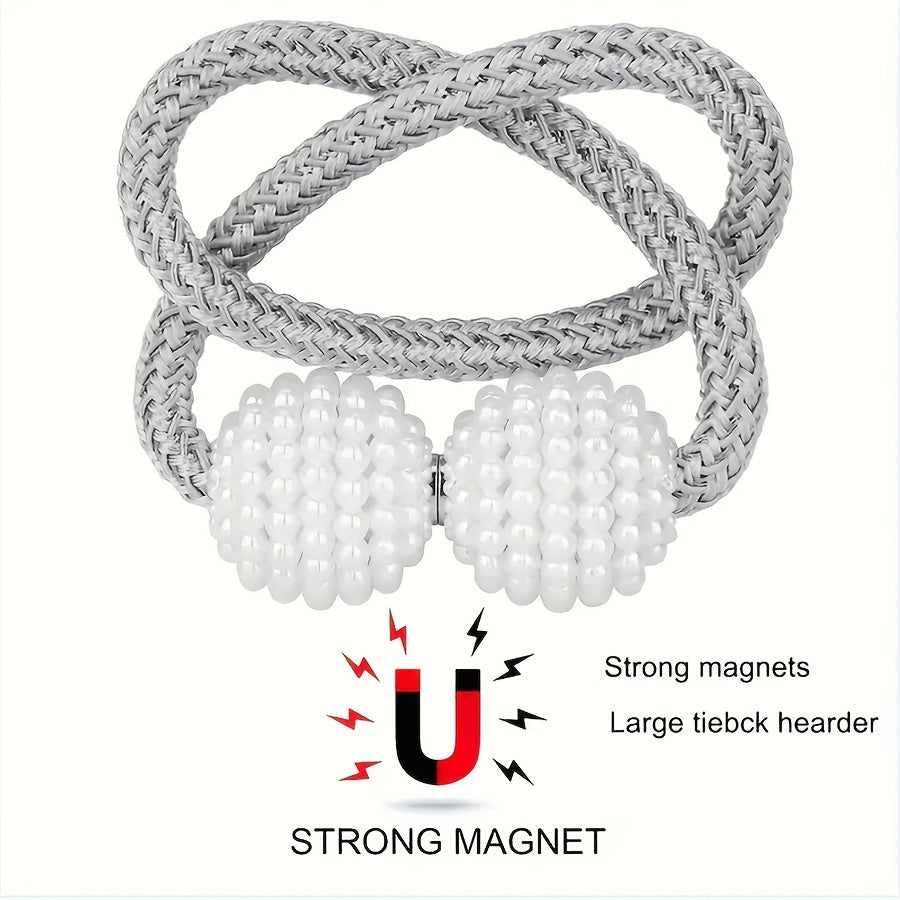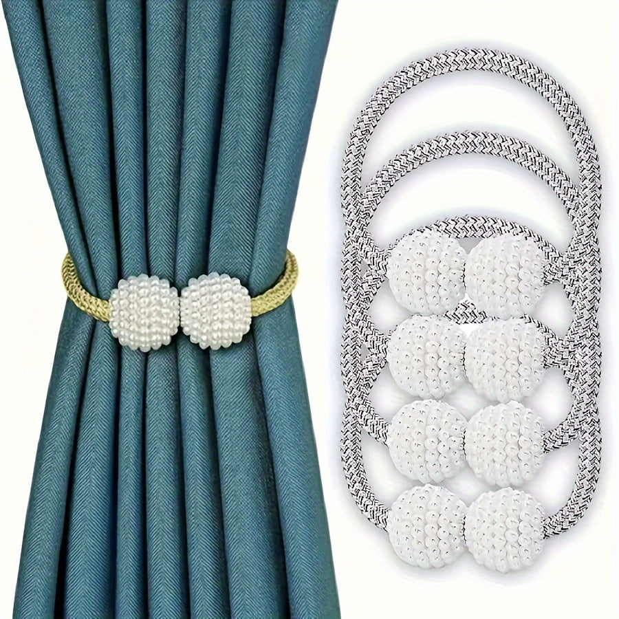 Set of 4 Magnetic Curtain Tiebacks with Faux Pearl Accents Polyester Rope Holders