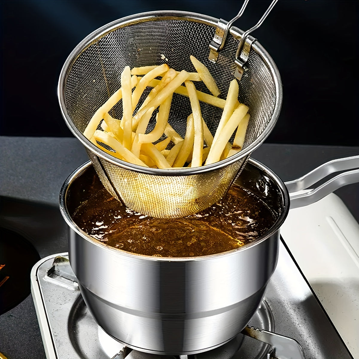 Set of 4 Stainless Steel Deep Frying Pans with Strainer Insert Cookware Set for Home Kitchen