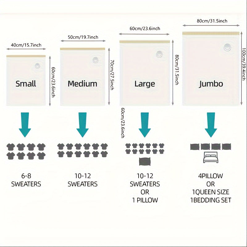 Set of 5 Vacuum Storage Bags with Hand Pump for Clothing and Bedding Space Saver