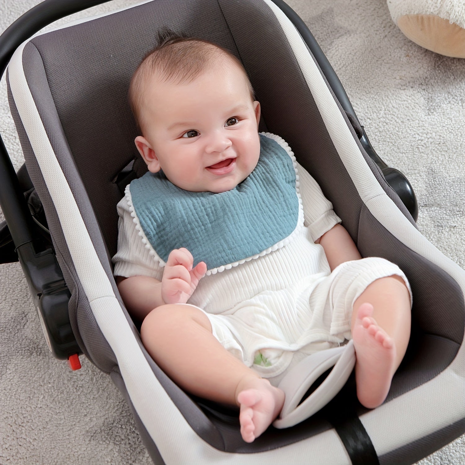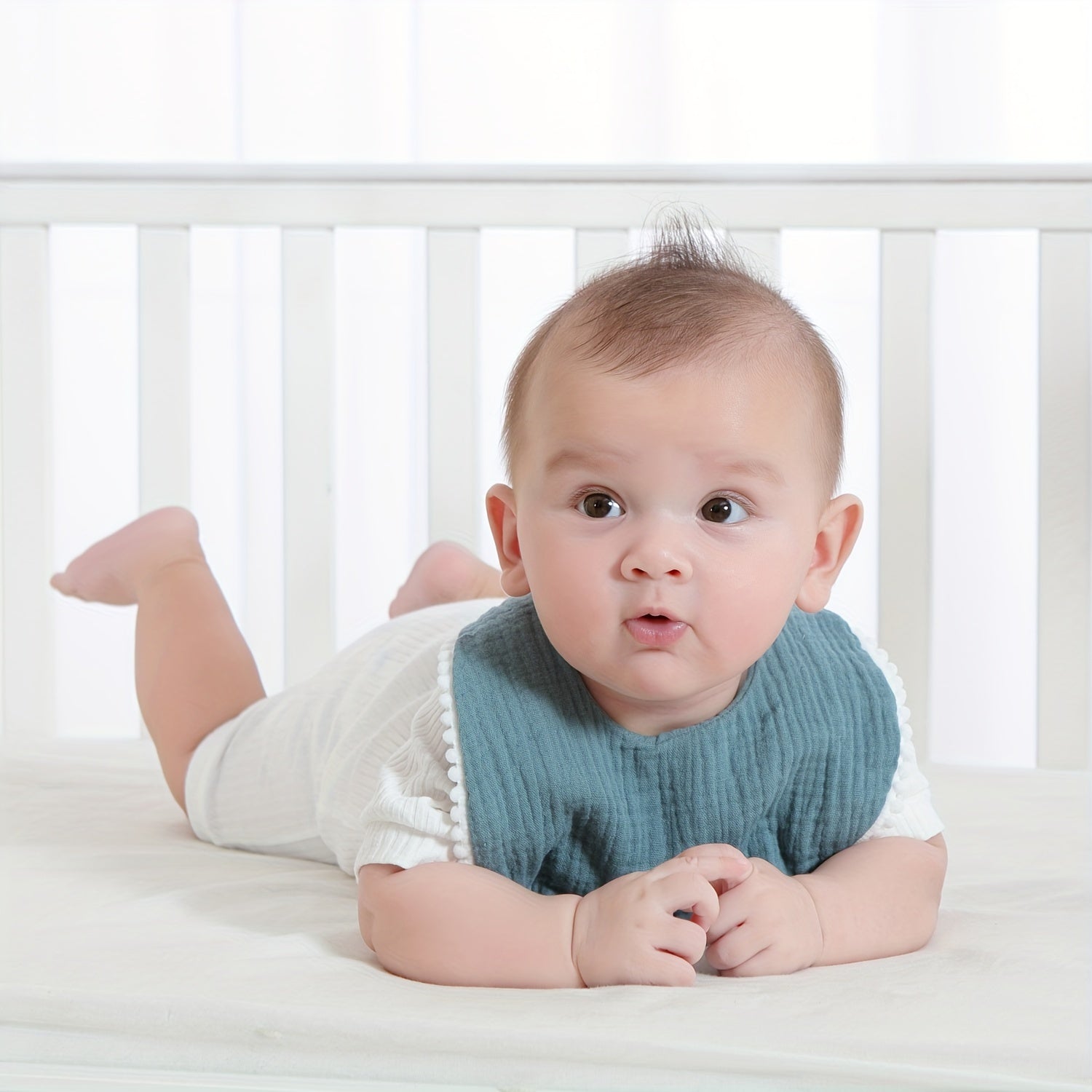 Set of 5 Baby Muslin Bibs with Pom Pom Accents Soft Adjustable Drool Bibs for Infants