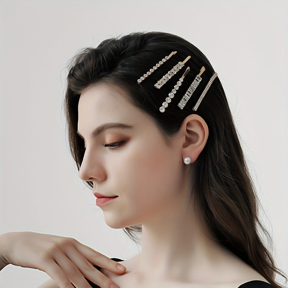 Set of 5 Crystal Hair Clips Rhinestone Bobby Pins Bangs Side Clips for Women