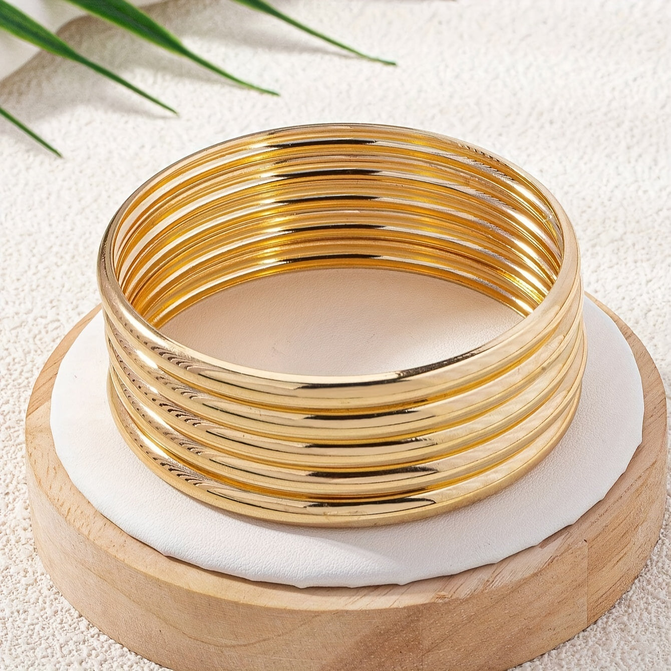 Set of 5 Gold-Plated Iron Bohemian Stackable Bangle Bracelets for Women