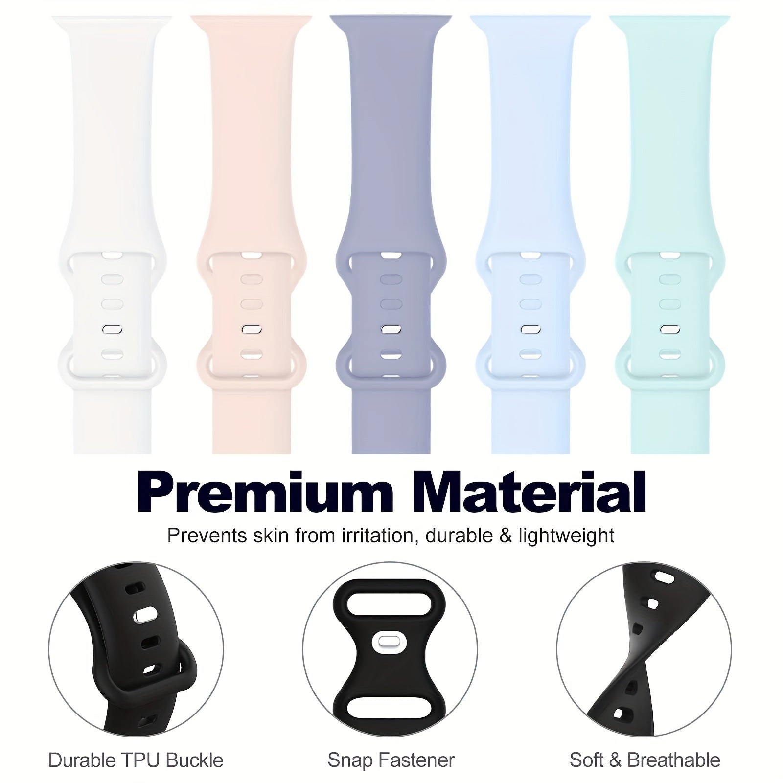 Set of 5 Waterproof Silicone Sport Bands for Apple Watch, Adjustable, Compatible with 38mm to 49mm
