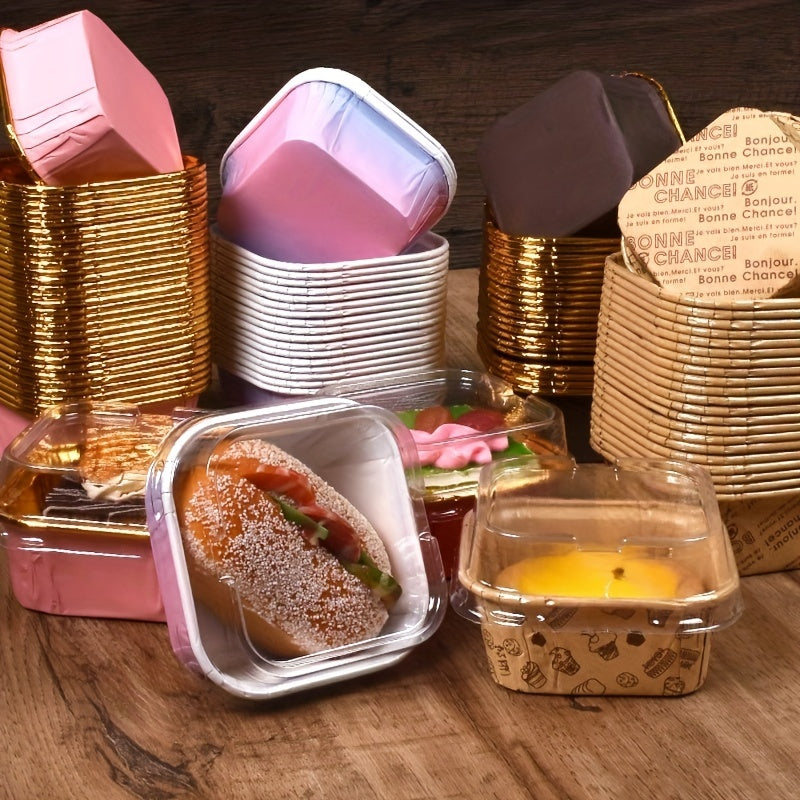 Set of 50 Colorful Foil Cupcake Liners with Lids, Oil-Proof Muffin Cups for Baking