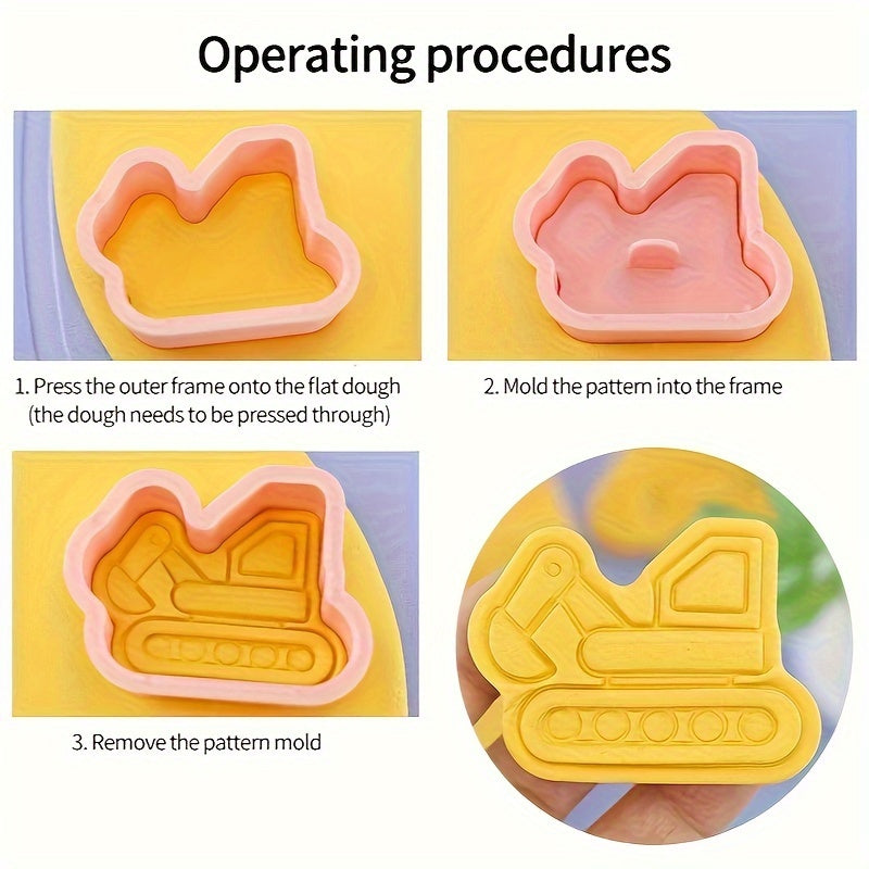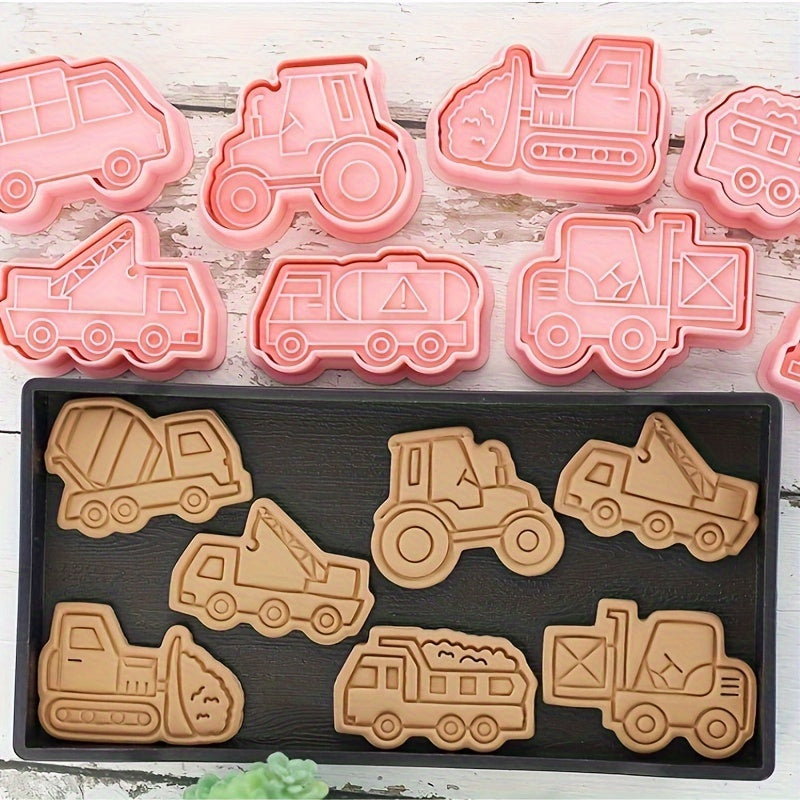 Set of 8 Construction Vehicles Cookie Cutters with Embosser and Baking Tools