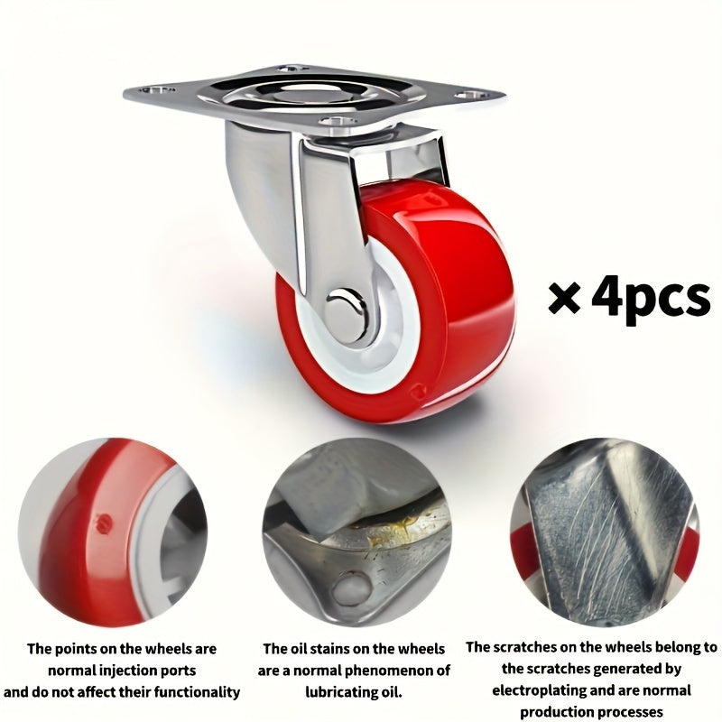 Set of Four Heavy-Duty Swivel Caster Wheels with Polished Finish for Furniture and Commercial Use