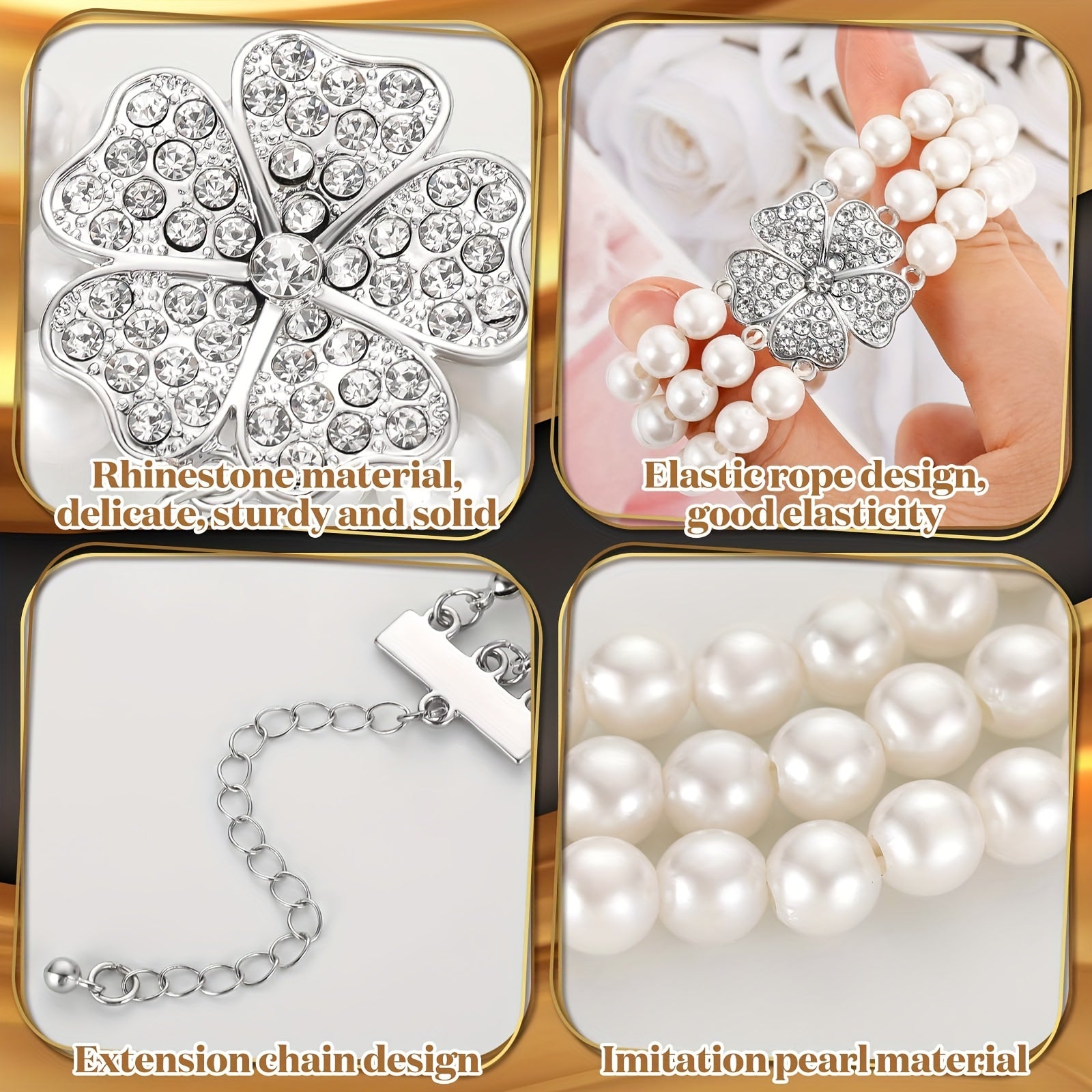 Vintage 1920s Pearl Jewelry Set with Flapper Earrings Necklace and Bracelet for Women