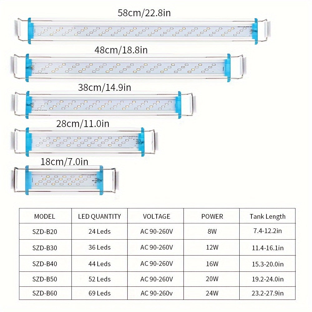 Ultra-Thin LED Aquarium Light Blue White Spectrum 220V for Fish Tank Landscaping