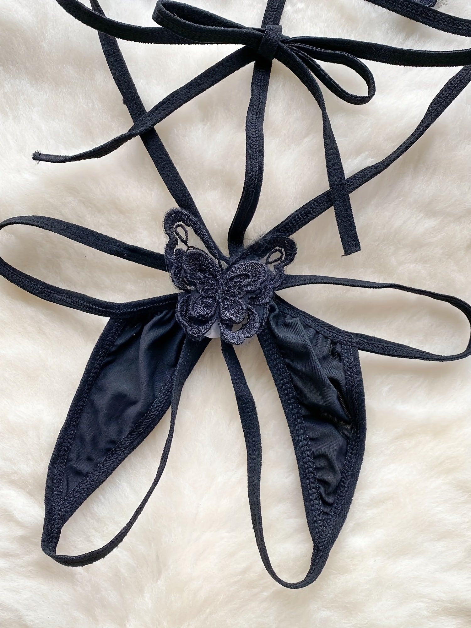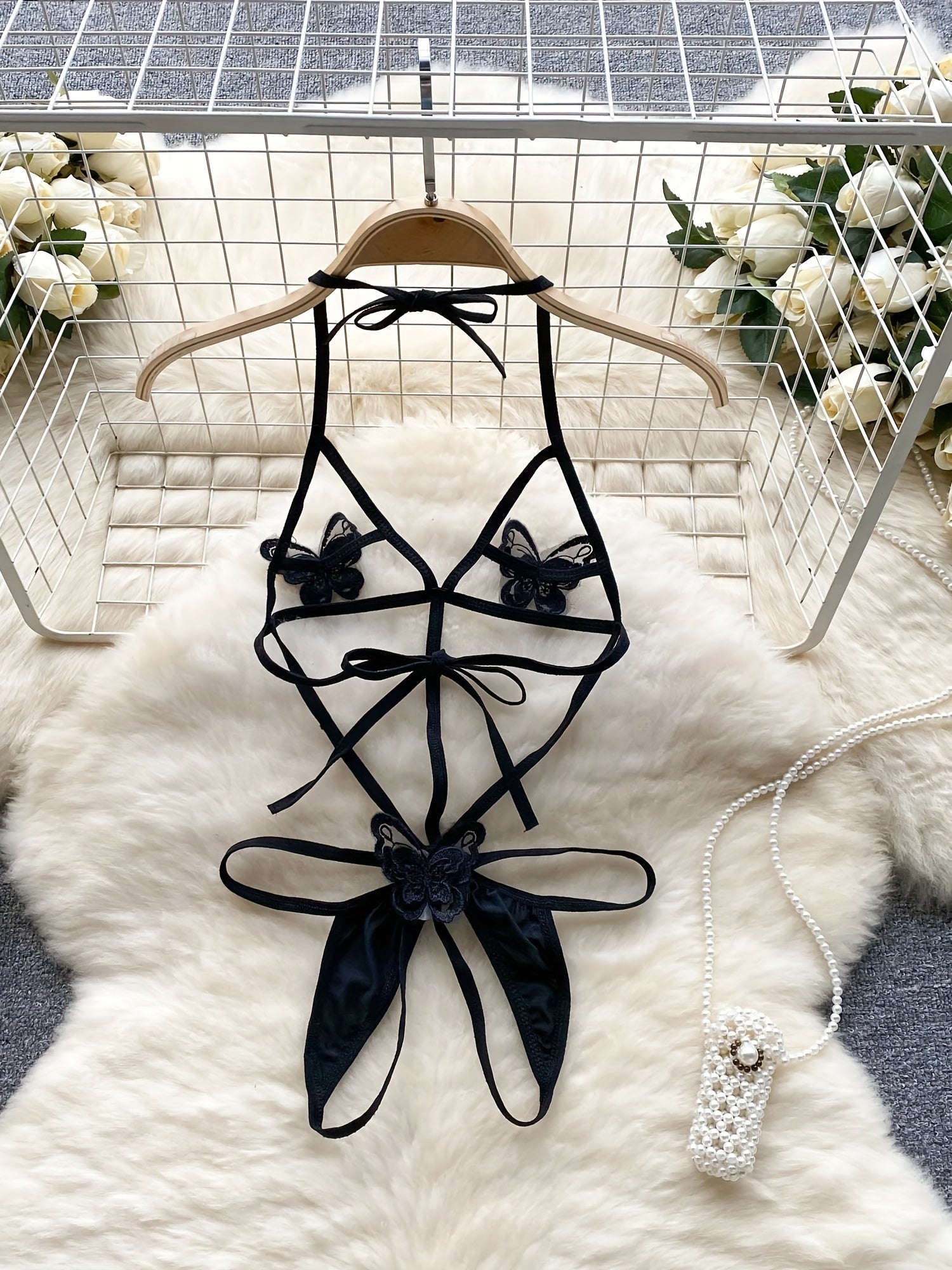 Women's Lingerie Set Halter Teddy with Butterfly Patch and Open Crotch