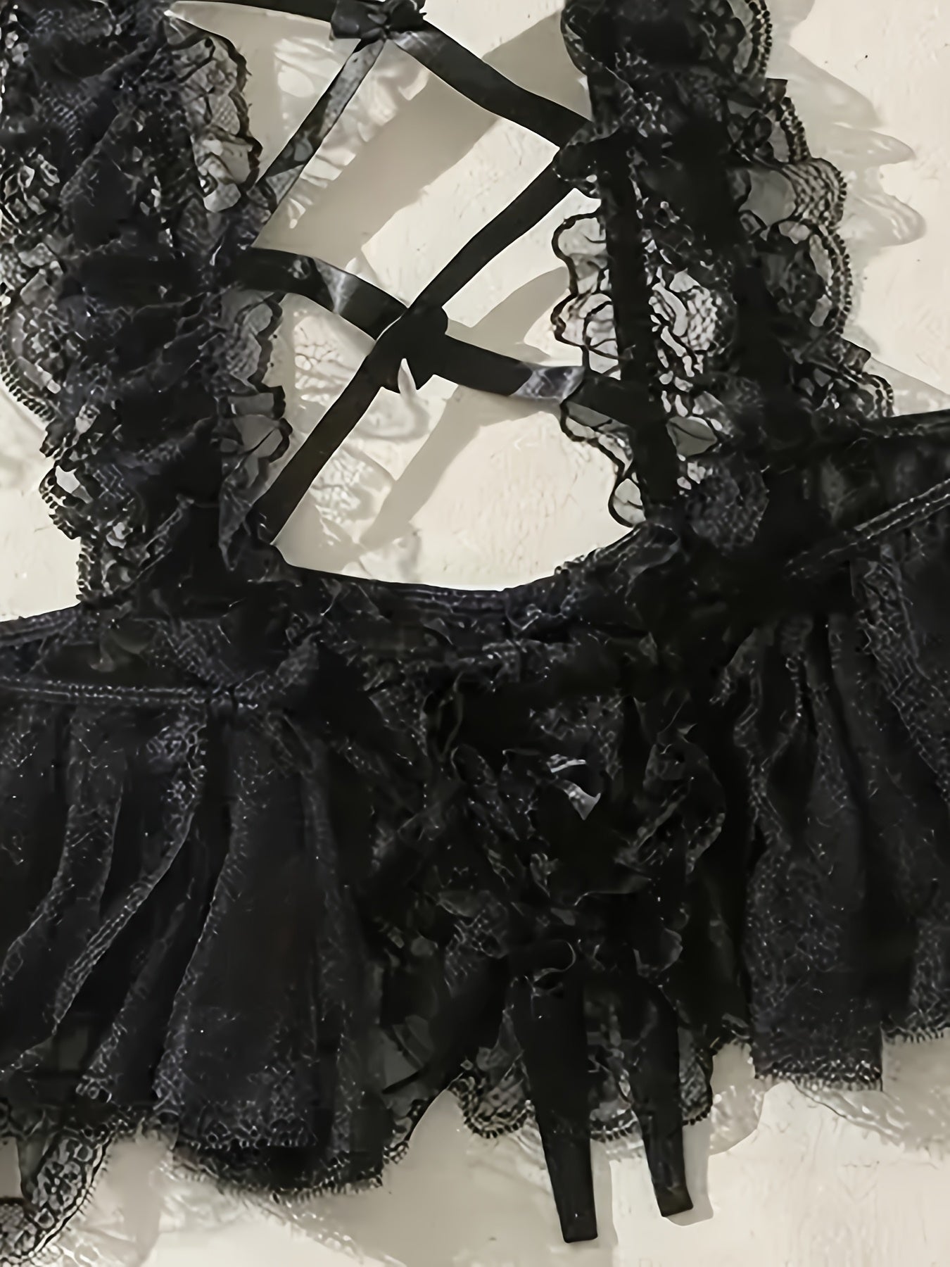 Women's Maid Costume with Mesh Tights Suspender Skirt Headwear and Bracelet