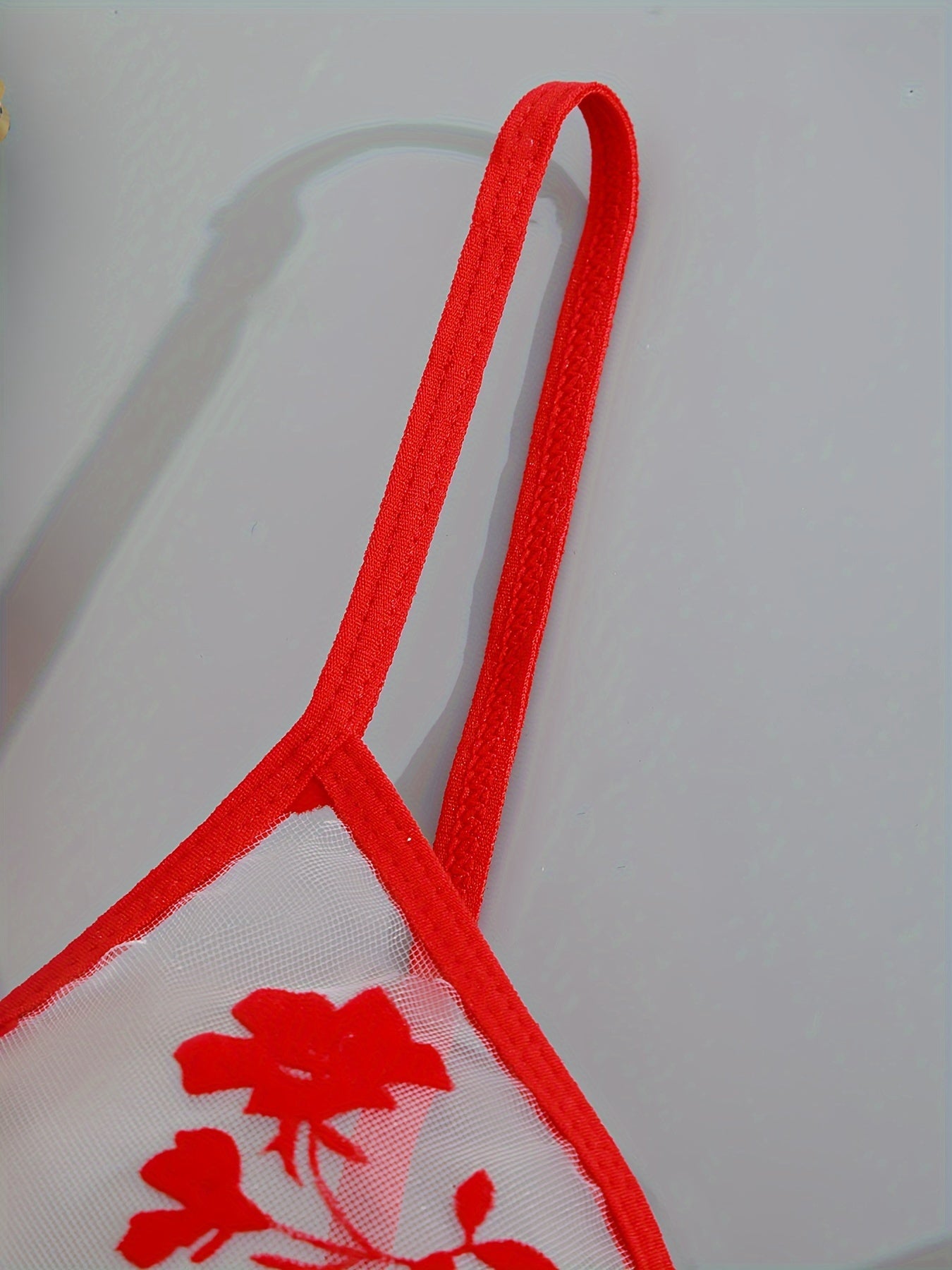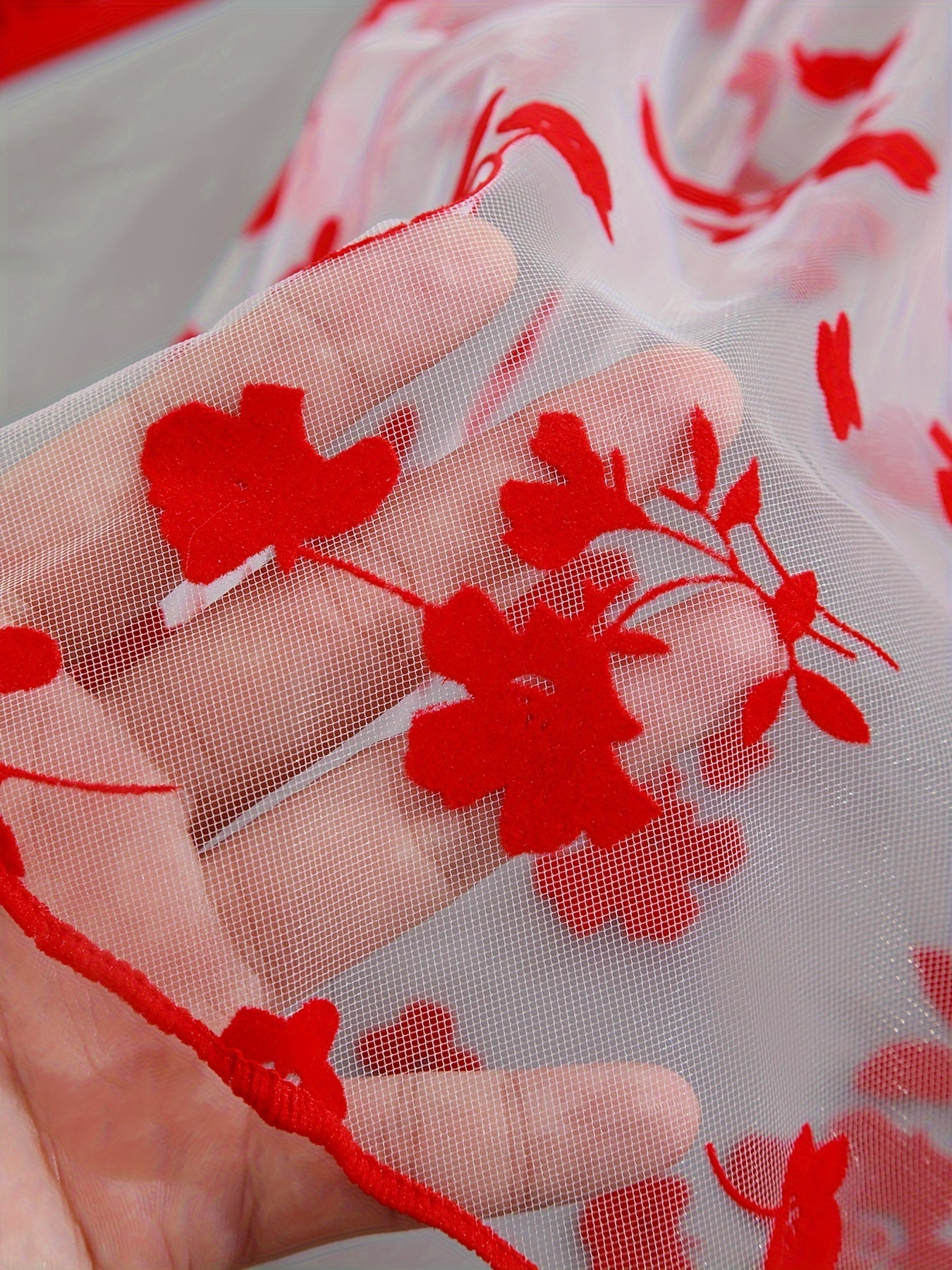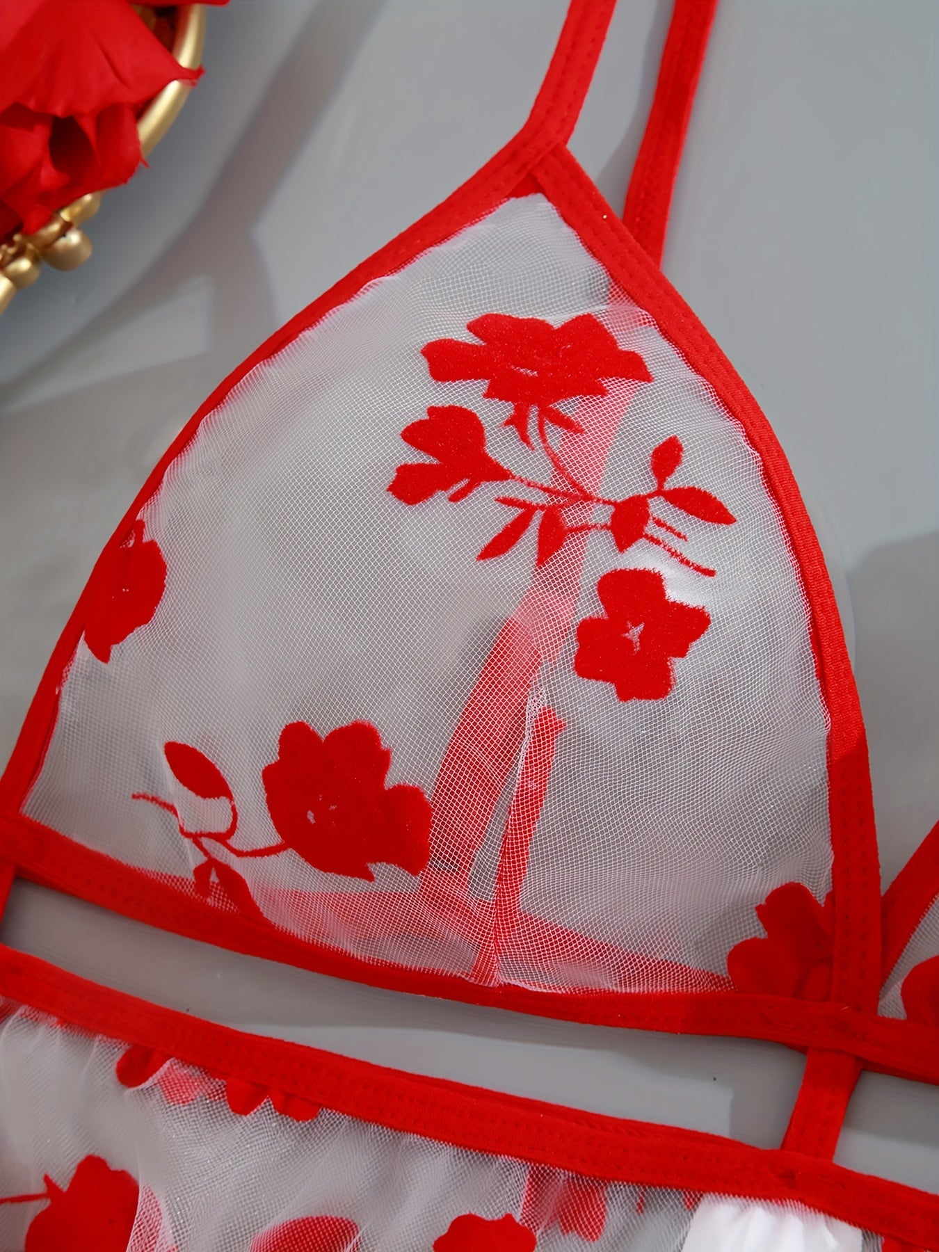 Black Floral Print Sheer Bodysuit with Thong Panties Lingerie