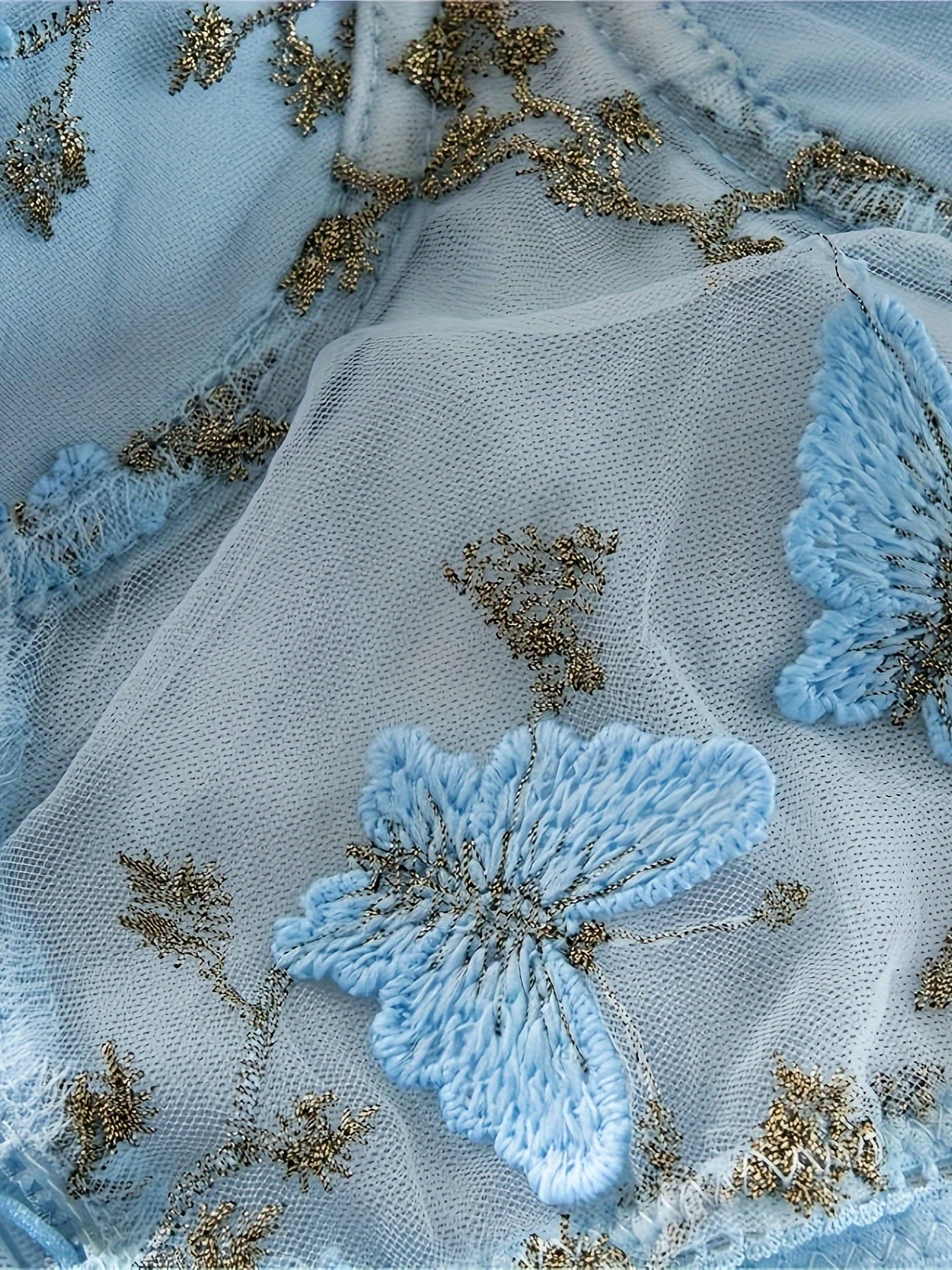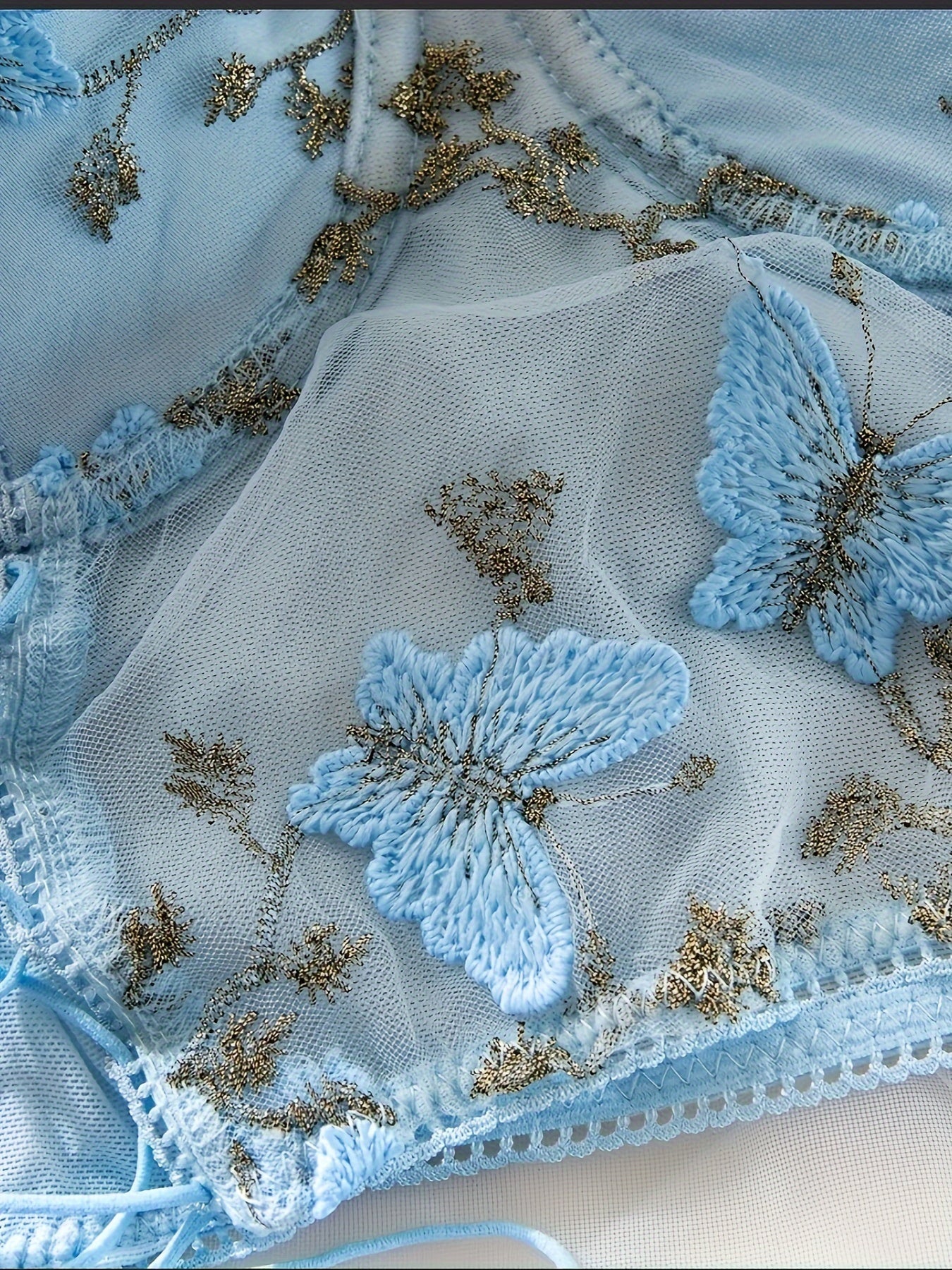 Women’s Sheer Mesh Embroidered Butterfly Bra Top with Steel Ring Detail