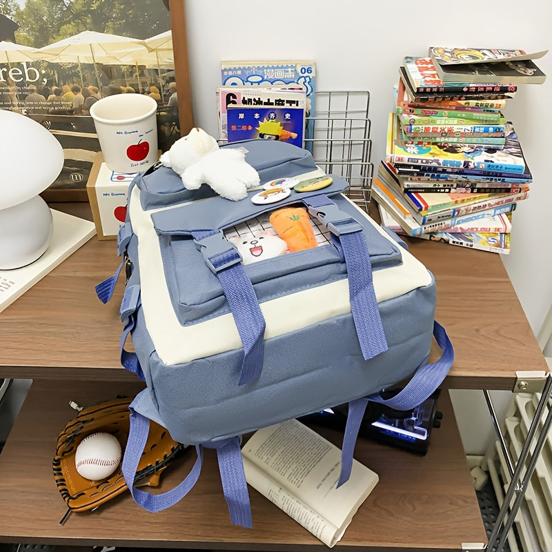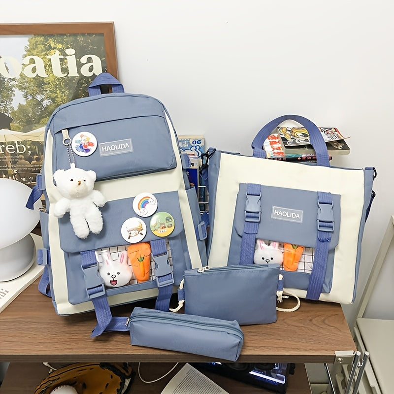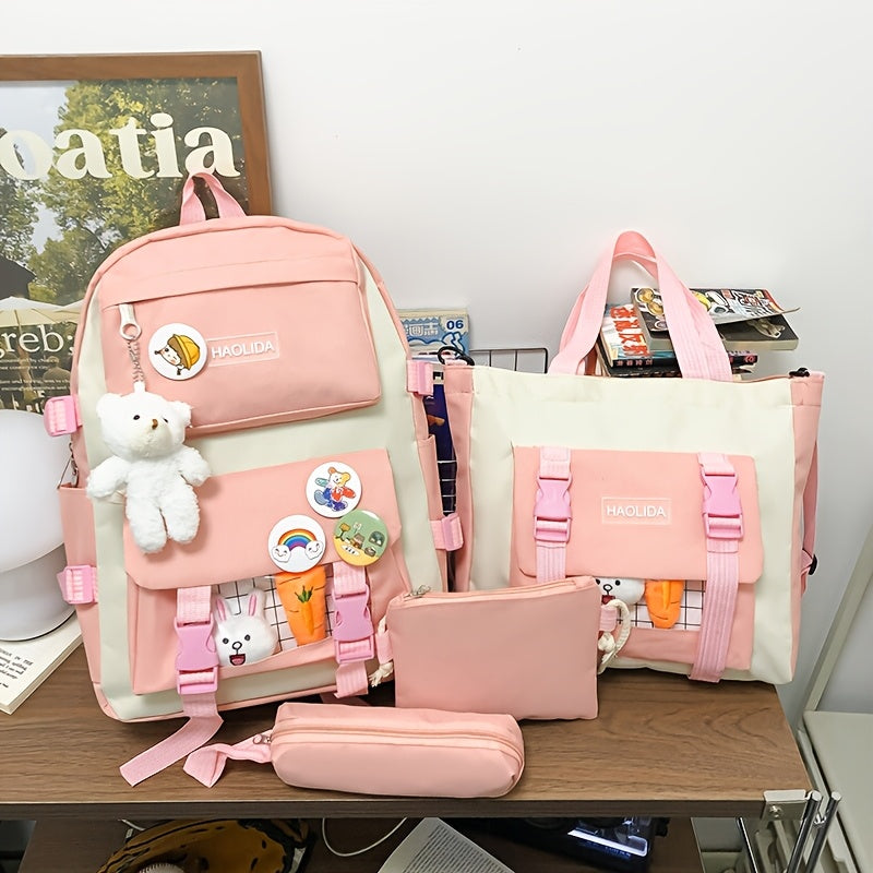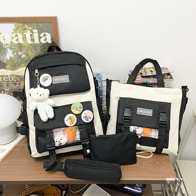 4-Piece Nylon Backpack Set for School Travel with Adjustable Straps and Zipper Closure