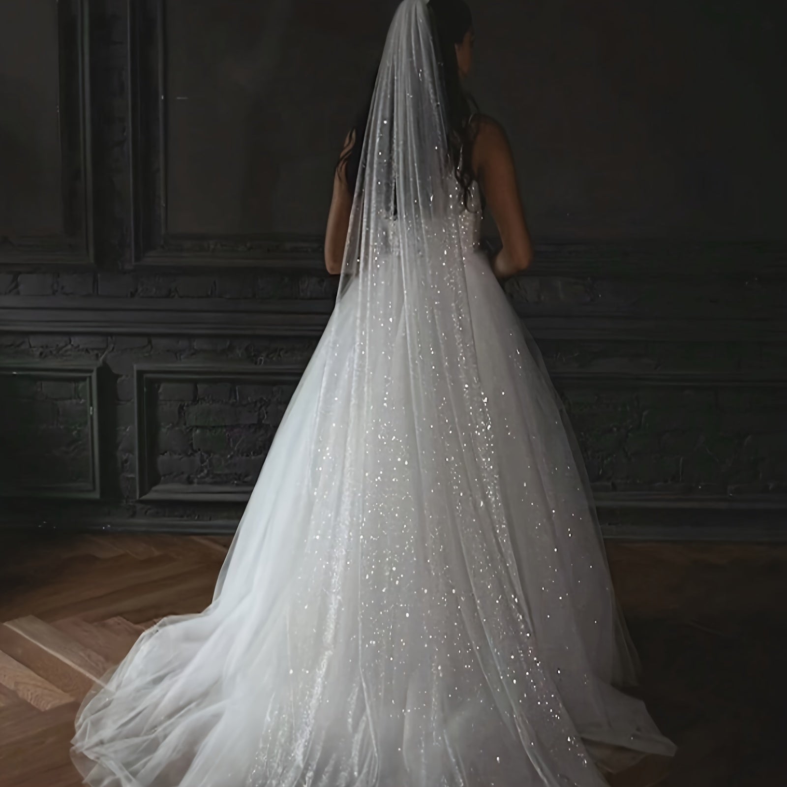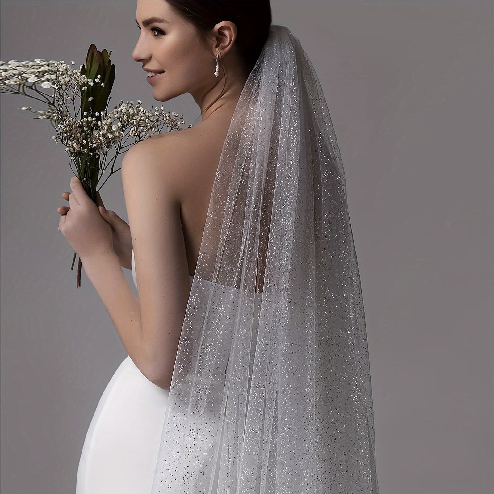 Wedding Hair Accessories Bridal Veil with Shimmering Floral Design for Wedding Day