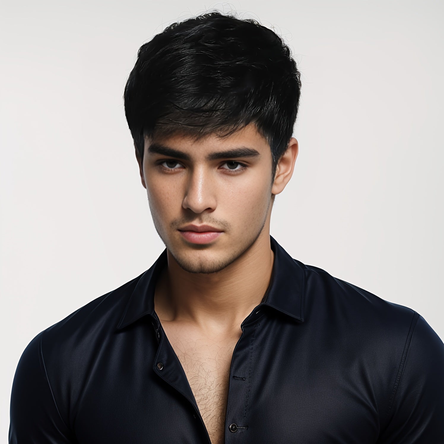 Men's Black Fluffy Wig with Side-Swept Bangs for Cosplay and Daily Wear