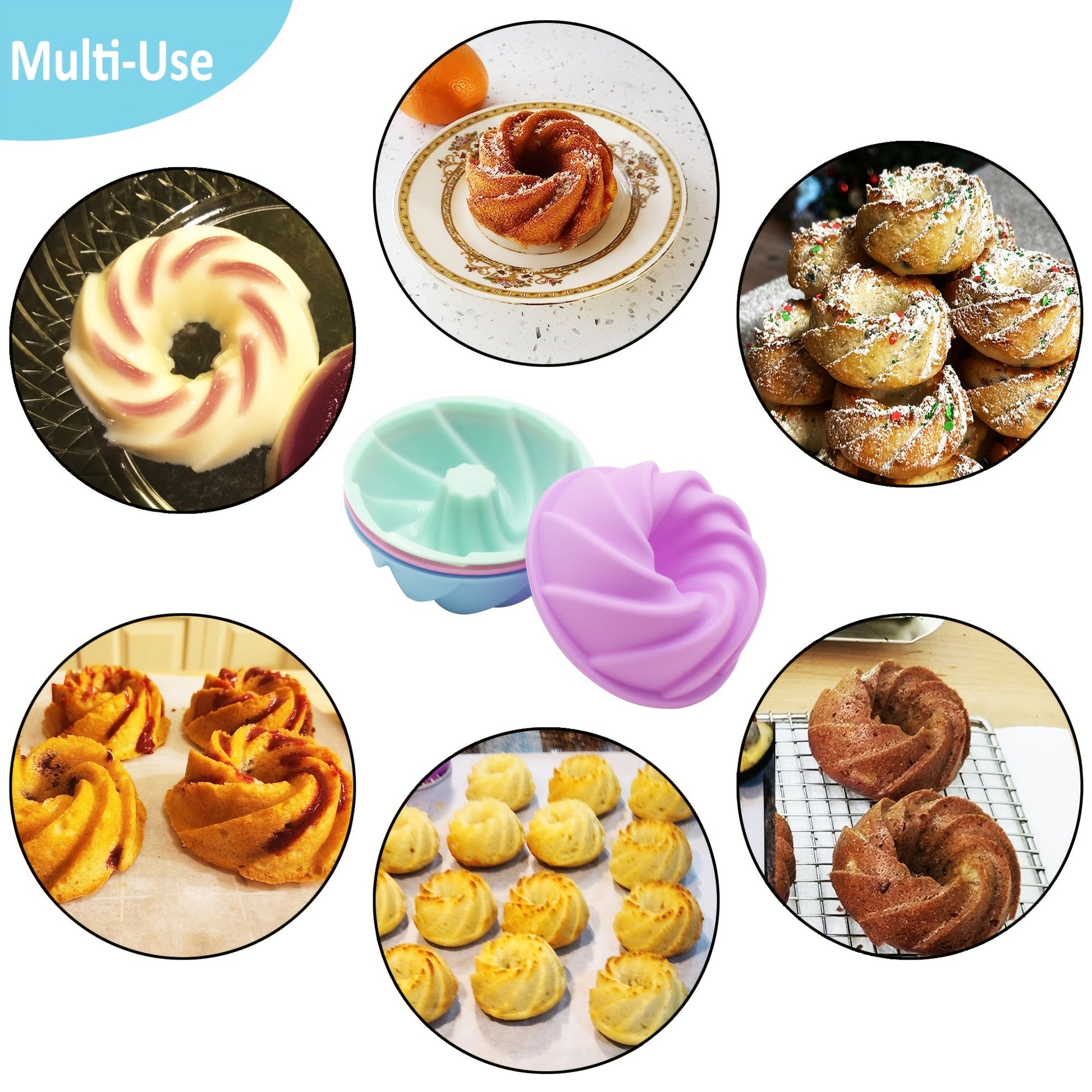 Silicone Bundt Cake Mold Set 12 Mini Fluted Cups 6.35cm Non-Stick Bakeware