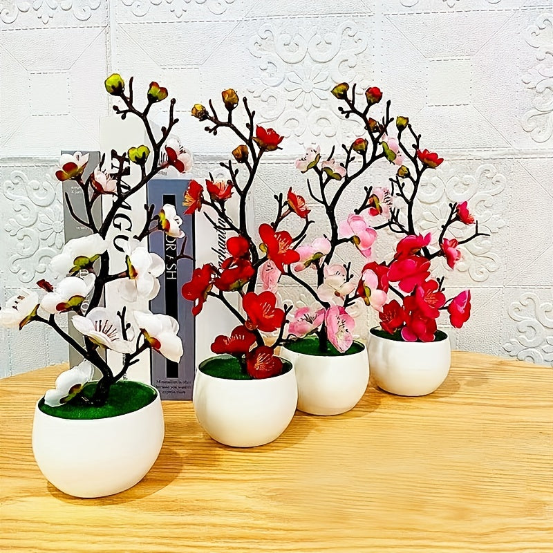 Artificial Plant Simulation Potted Bonsai with Plum Blossom and Wax Plum Branches for Home Decor