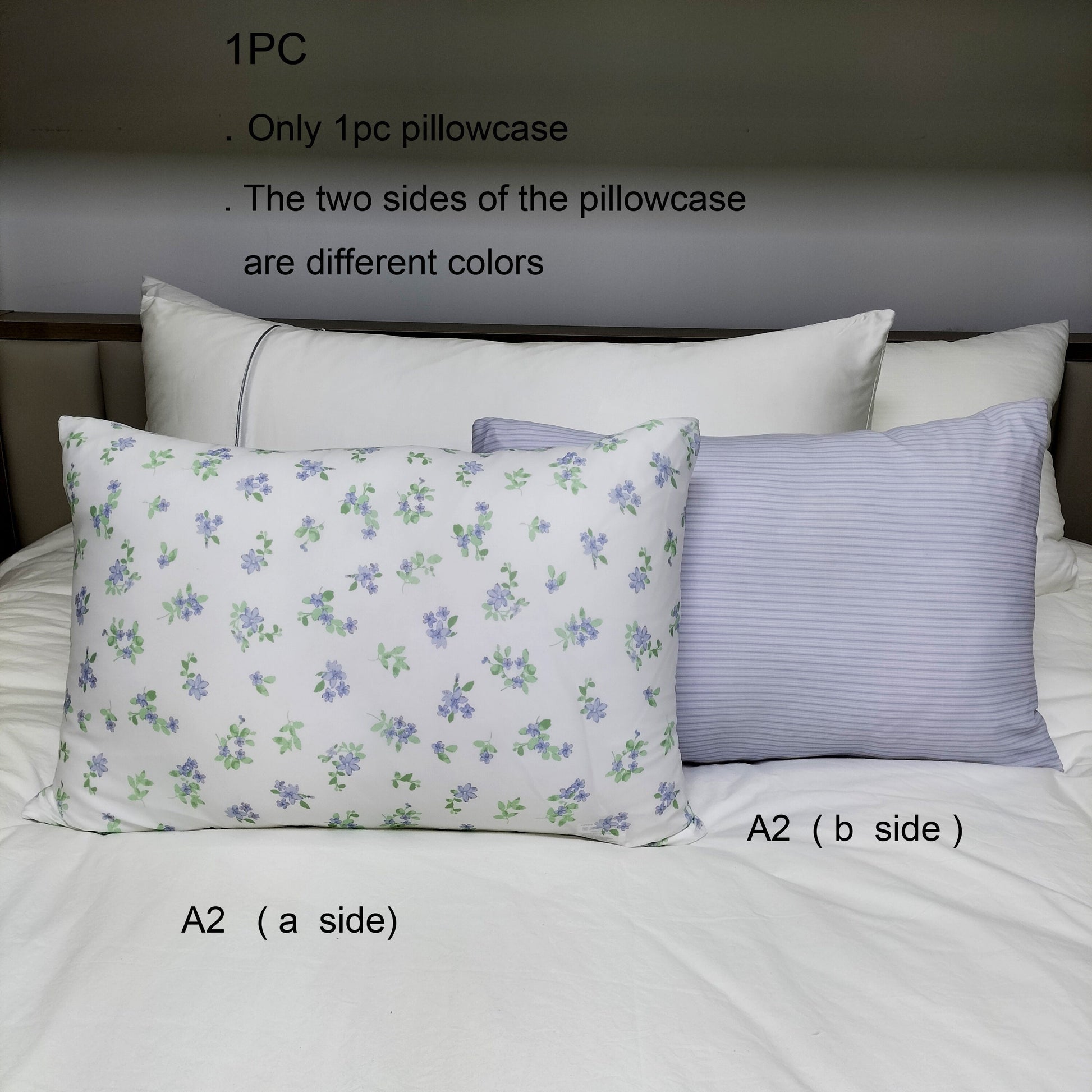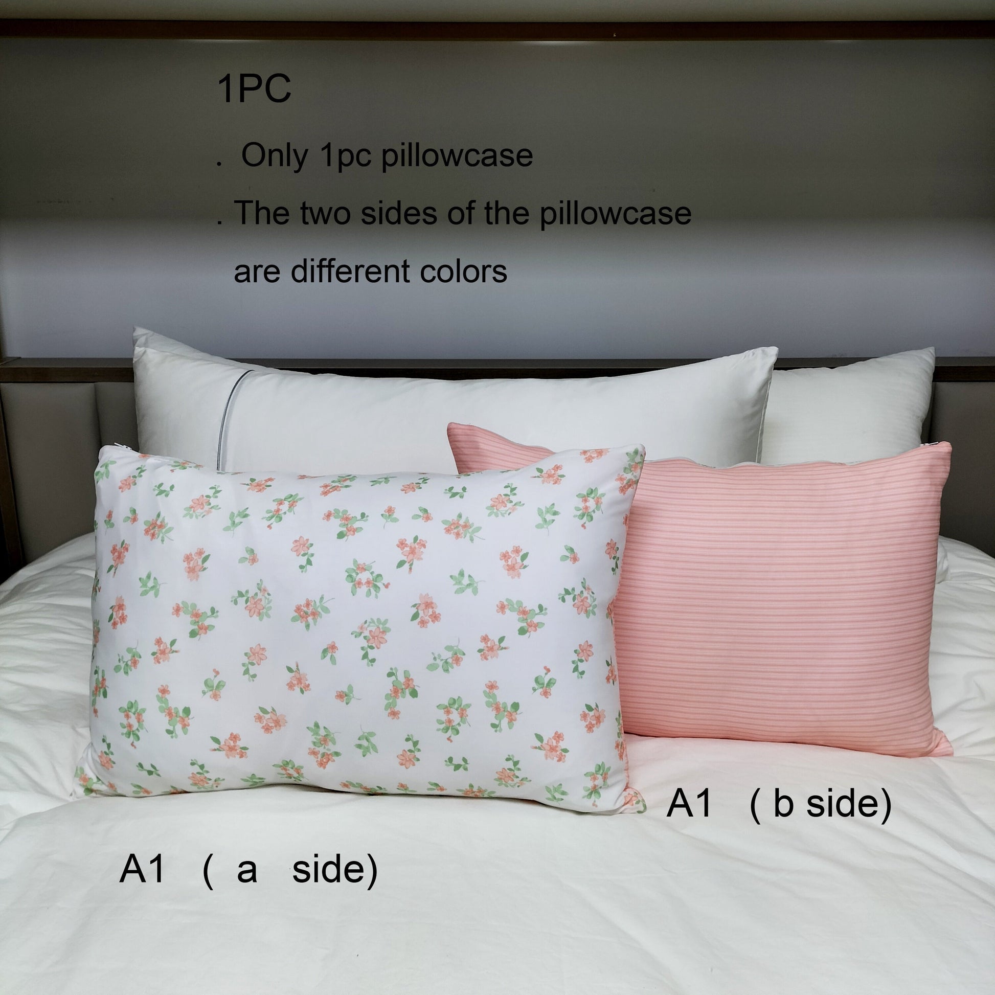 Double-Sided Floral Pillowcase with Zipper, Machine Washable, Durable Polyester