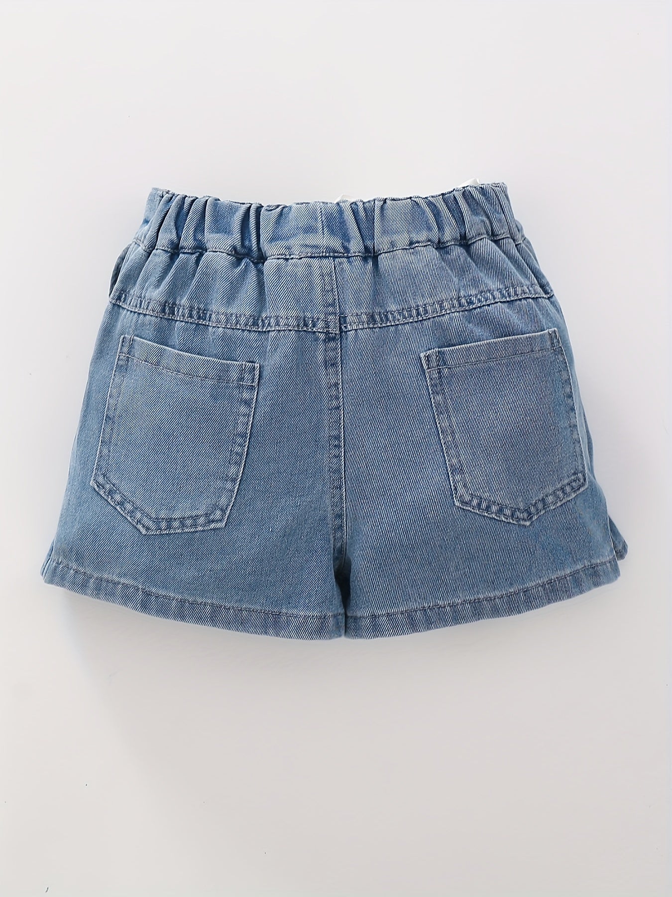 Denim Culottes Skirt for Women with Ruffle Detail Solid Summer Casual