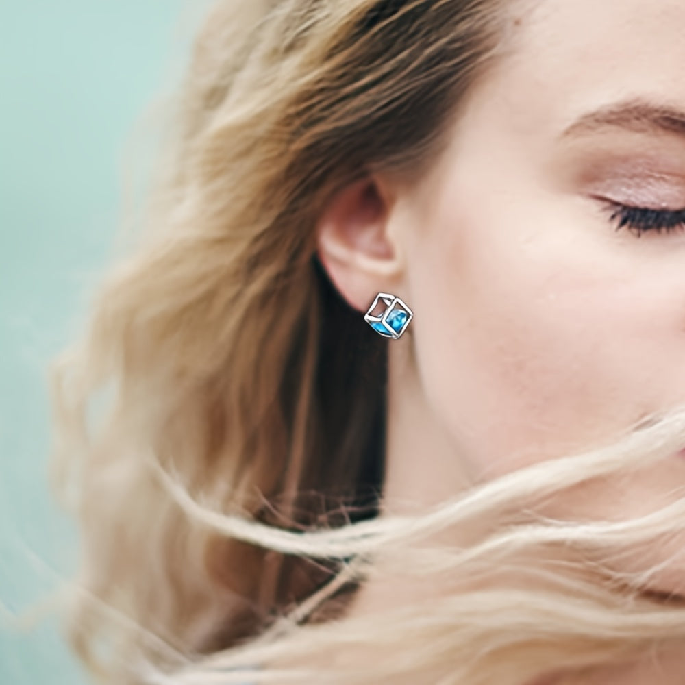Small 3D Cube Birthstone Stud Earrings for Women Sterling Silver Minimalist Birthday Gift