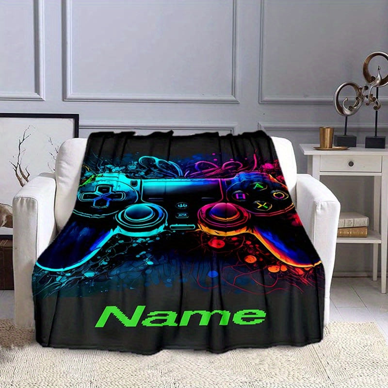 Personalized Game Console Blanket with Custom Name for Naps Camping Travel Warm Soft