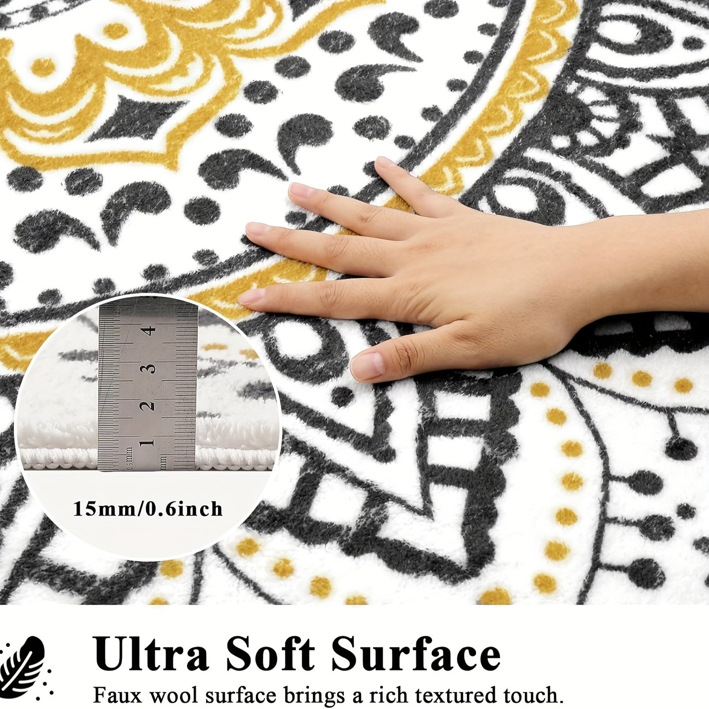 Bohemian Flower Round Carpet Rug Non-slip Indoor Living Room Bedroom Decor