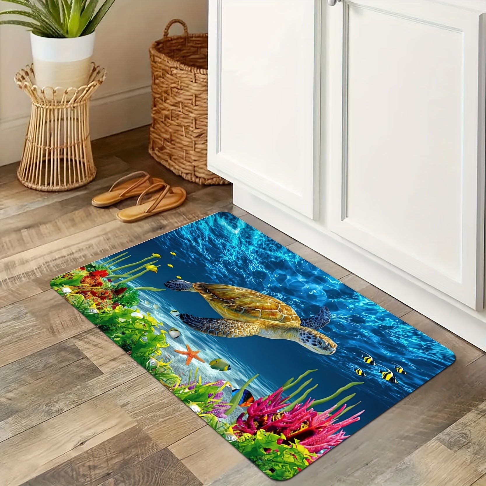 Soft Non-Slip Bath Rug with Sea Turtle Pattern Absorbent Bathroom Carpet