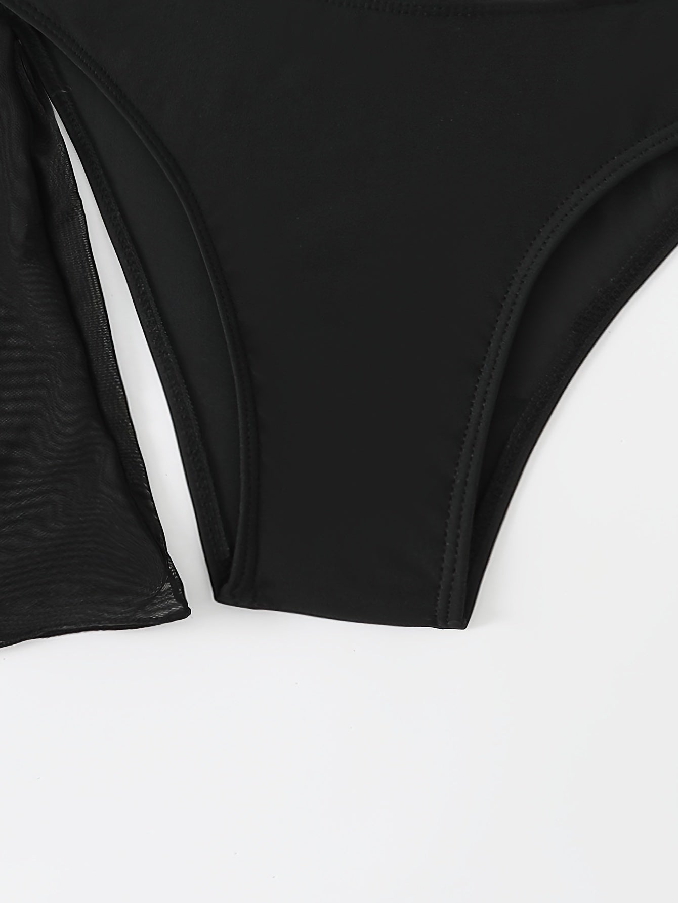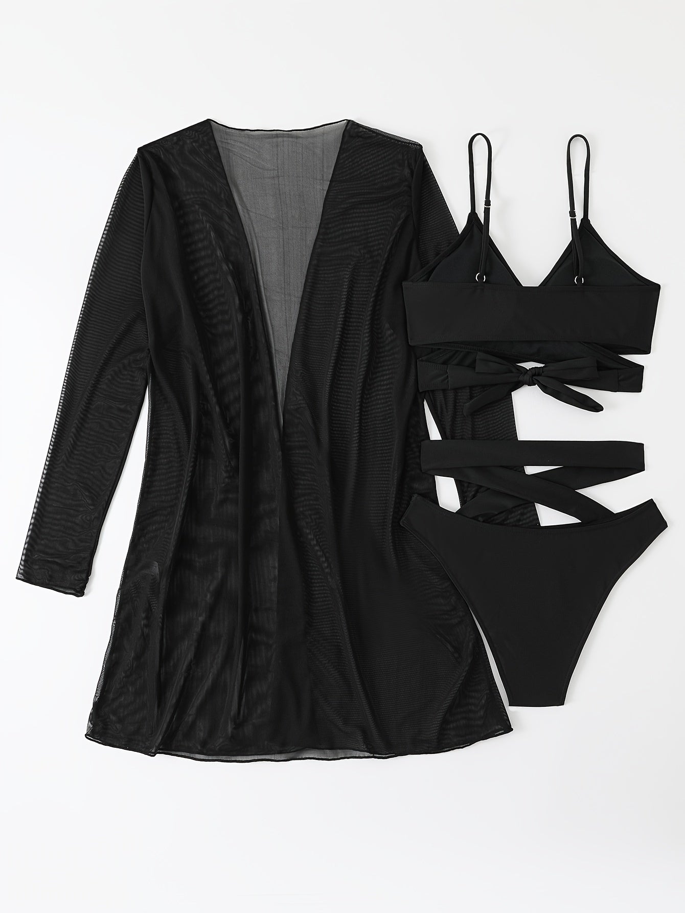 Women's Solid Color High-Waisted Bikini Swimsuit Set with Cover-Up for Sun Protection