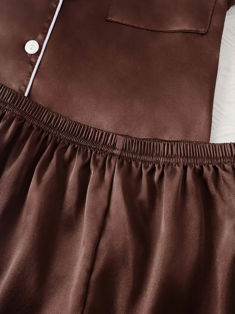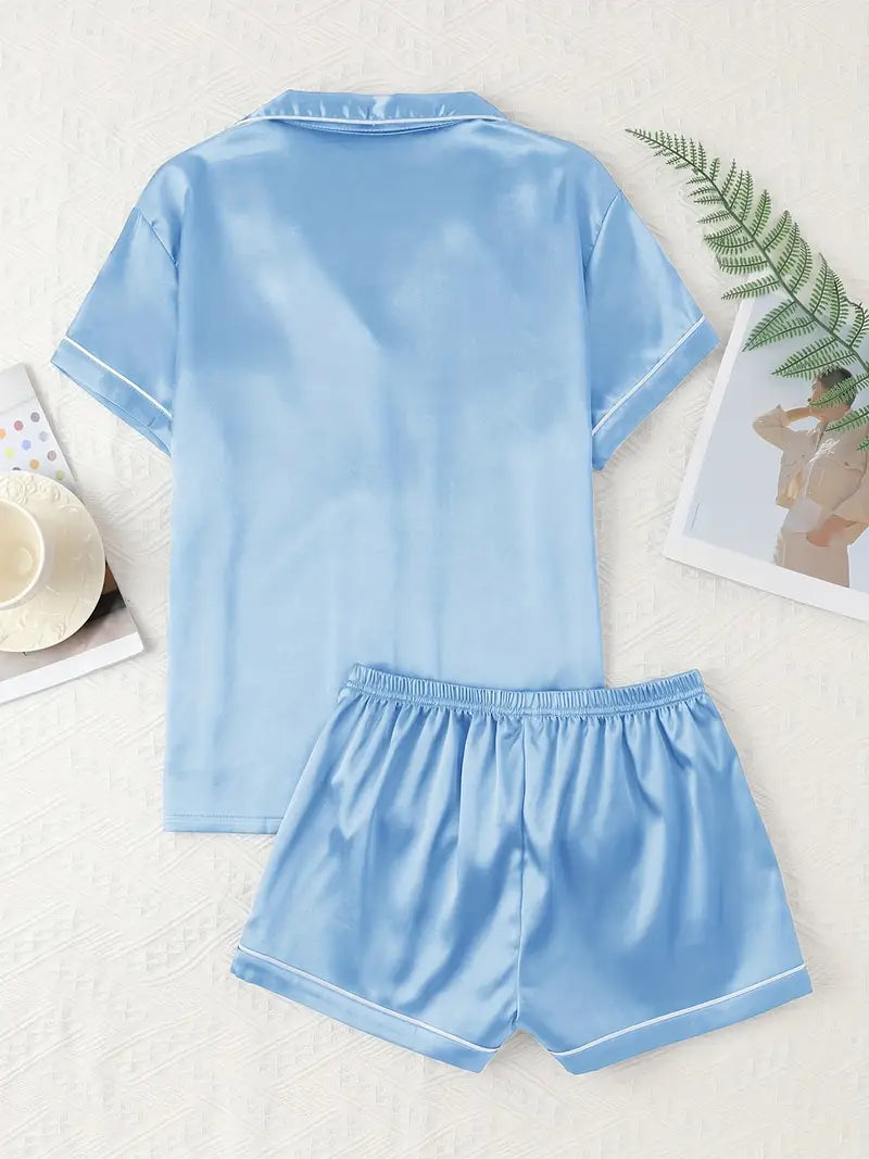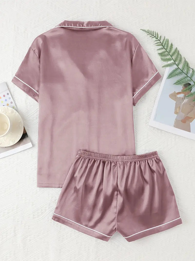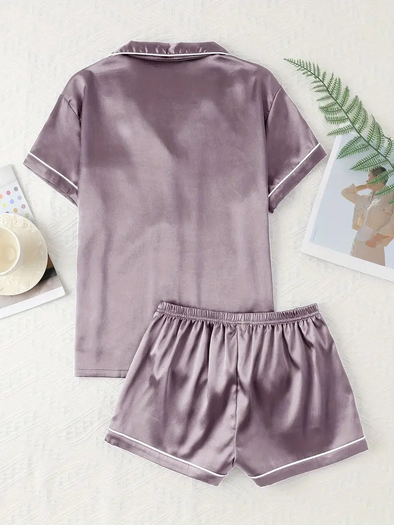 Adult Satin Solid Color Double Shorts Pajama Set