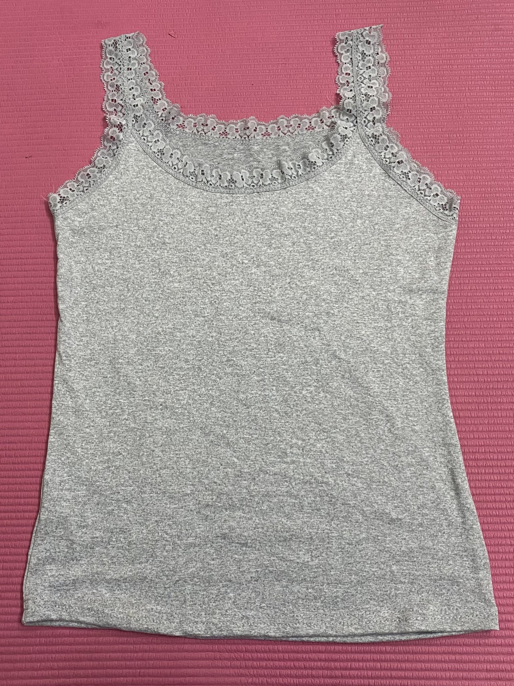 Women's Lace Trim Tank Top Set with Round Neck and Cotton Fabric