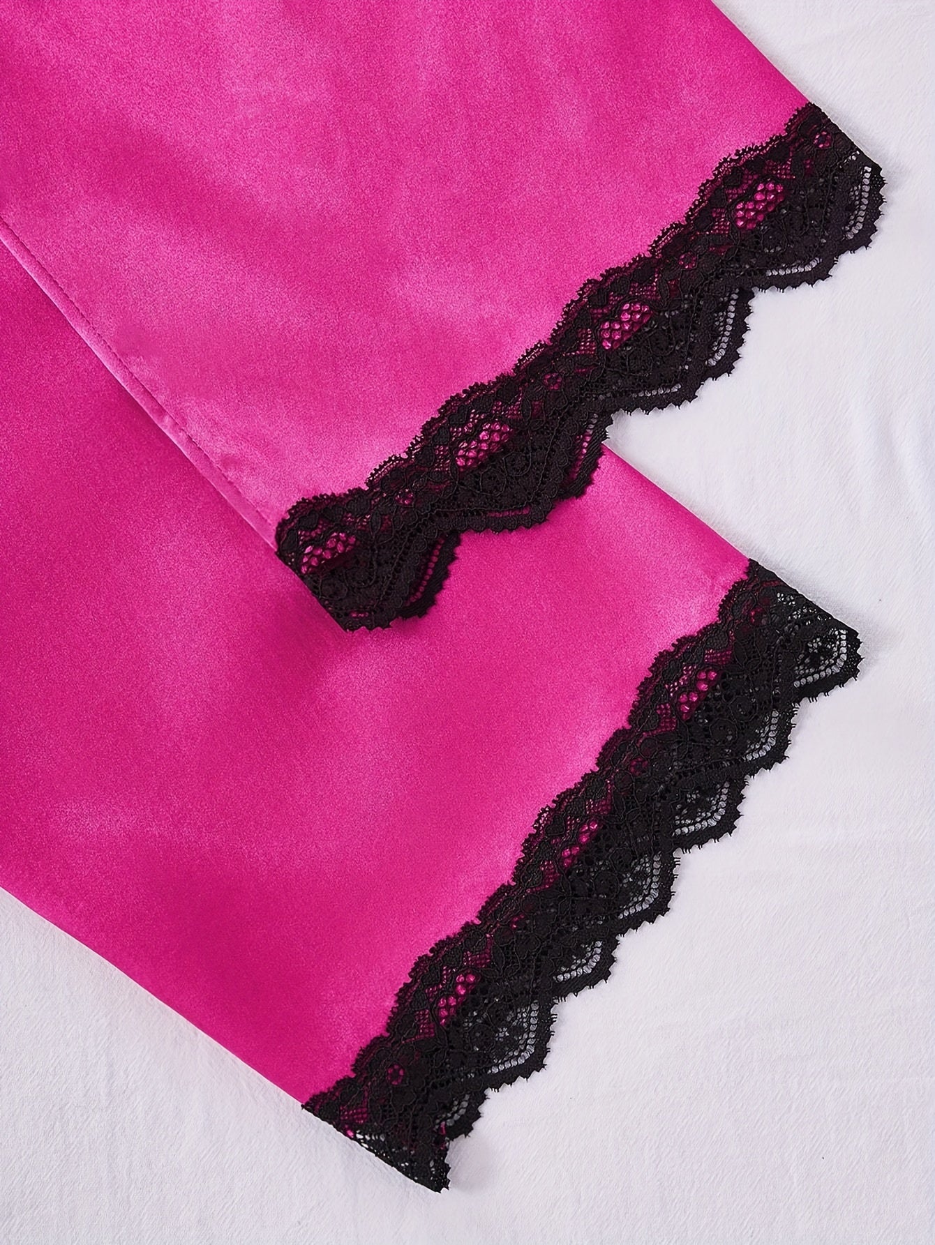 Women's Solid Polyester Pajama Set with Lace Trim Camisole Shorts Pants and Robe