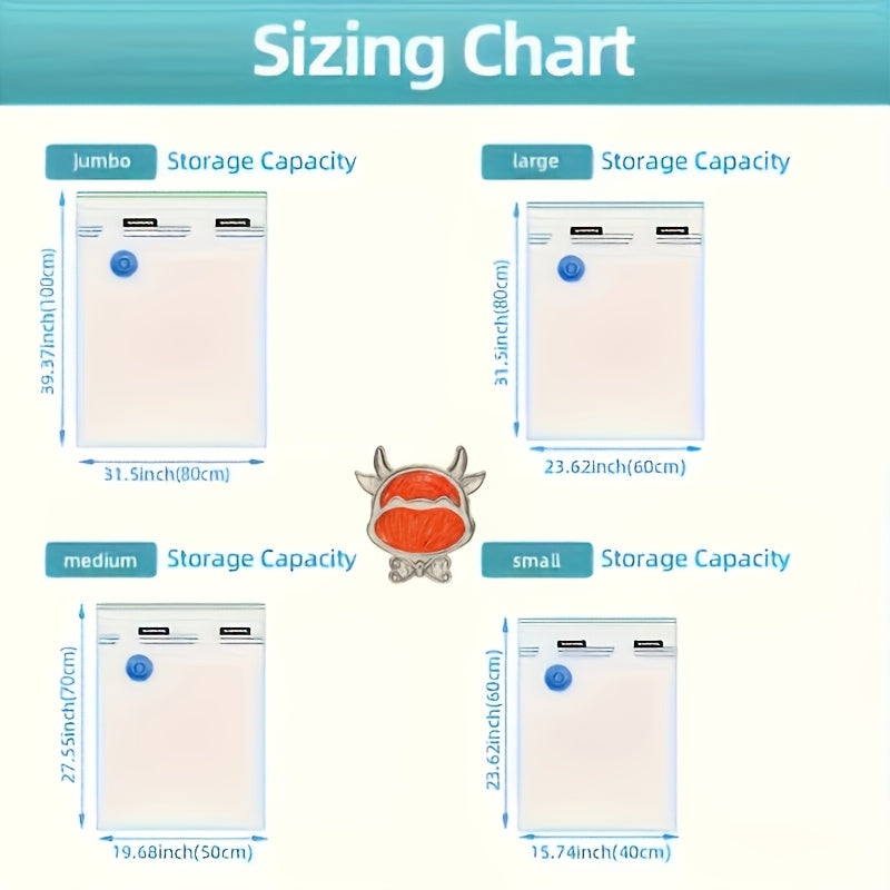 Vacuum Storage Bags Set with Manual Pump Multiple Sizes Plastic Rectangle Secure Seal