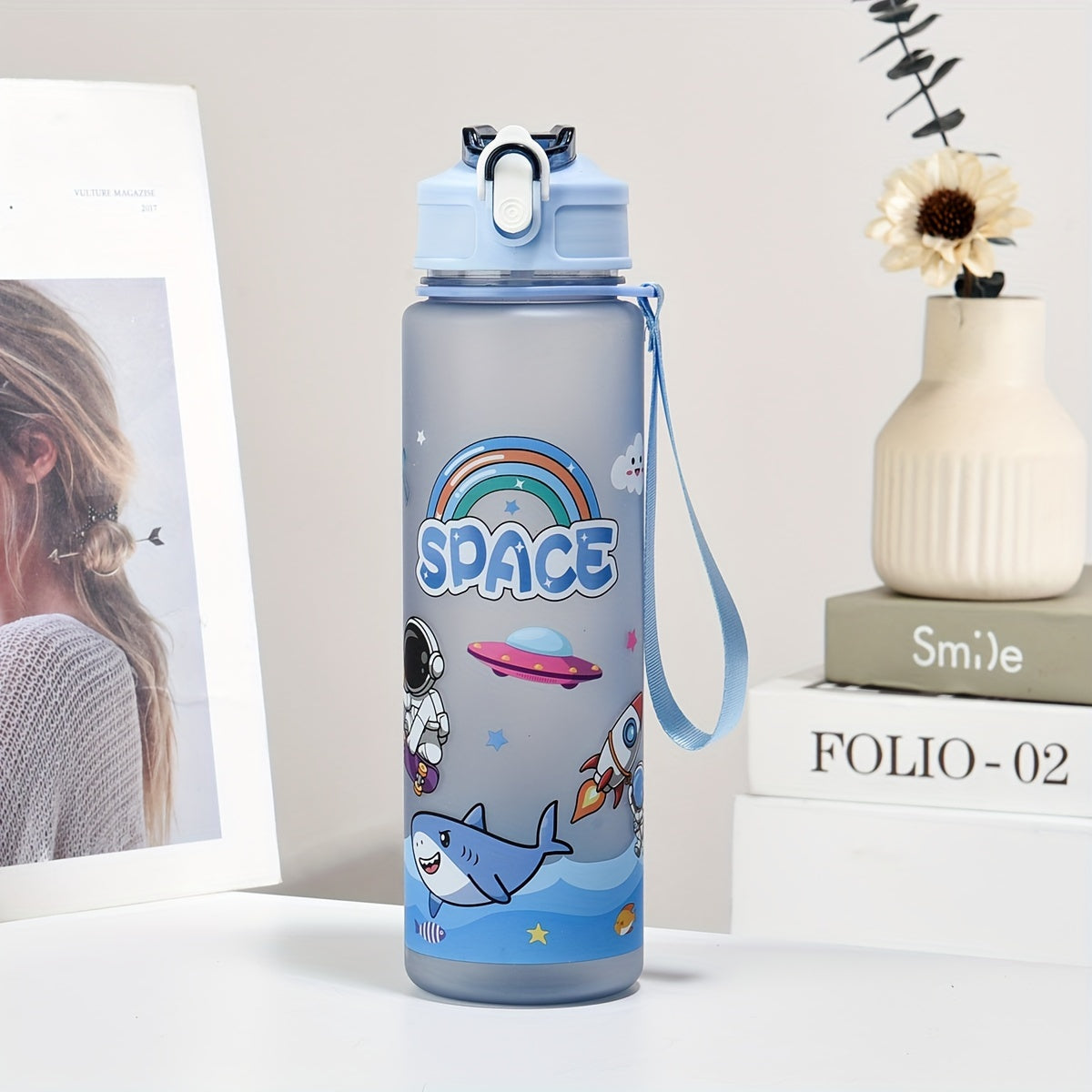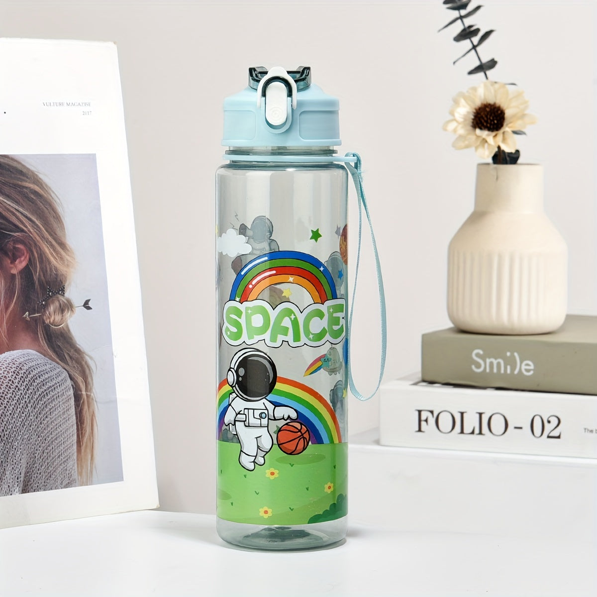 Space-Themed Astronaut Water Bottle with Straw Lightweight PVC-Free for Outdoor and Back-to-School