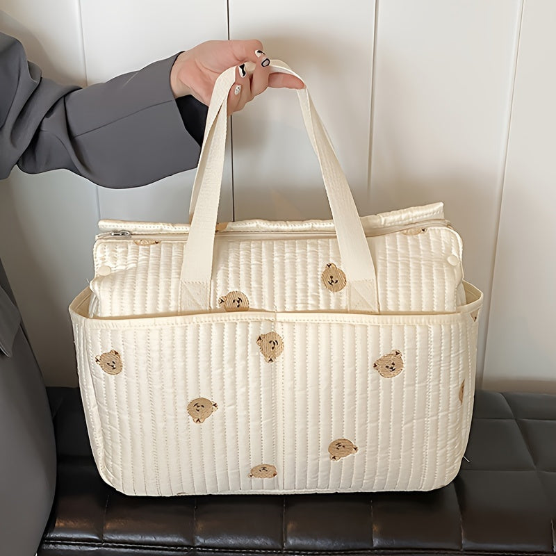 Large Quilted Diaper Bag with Stroller Straps and Changing Mat for Women