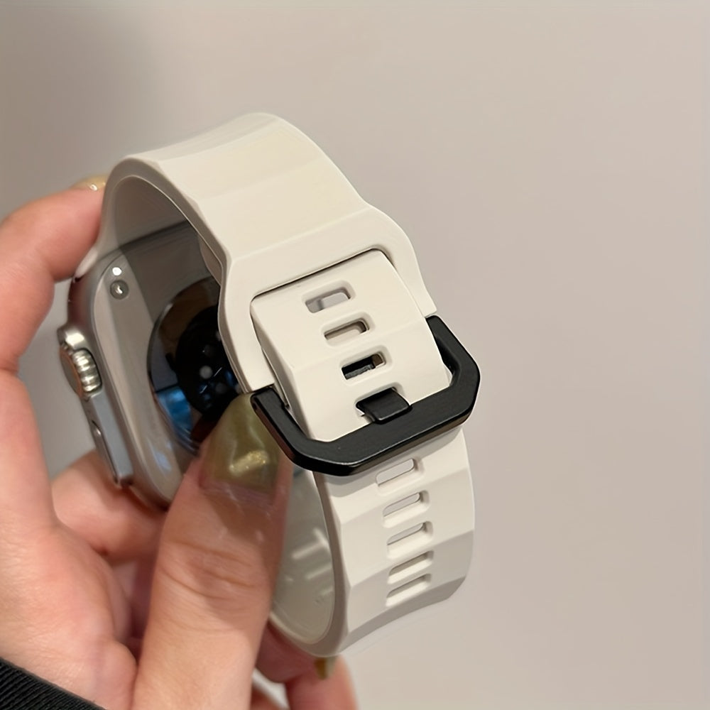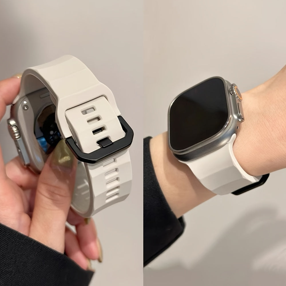 Silicone Sports Watch Strap for Apple Watch Series 3-9 Ultra2 42mm 44mm 45mm 49mm Black Buckle