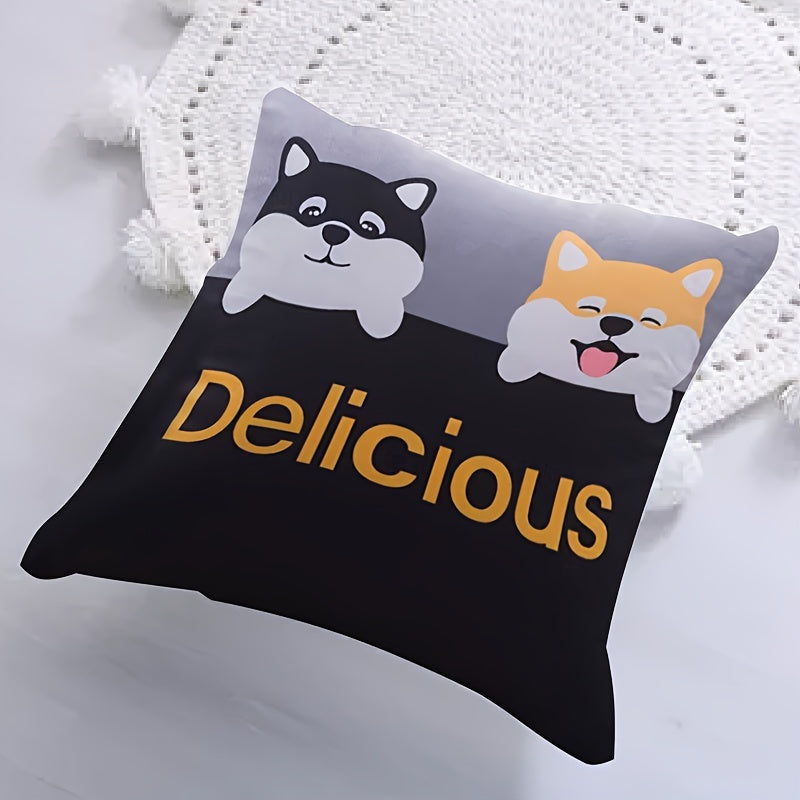 Square Cushion Cover with Dog Design 45cm Removable Zipper Washable for Sofa Bed Car Decor