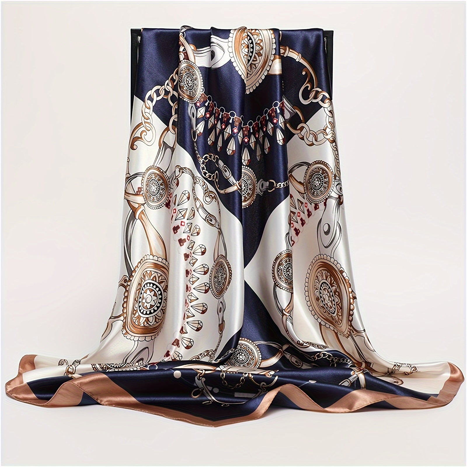 Square Satin Scarf with 4-Color Print 89.99cm Casual Summer Head Wrap