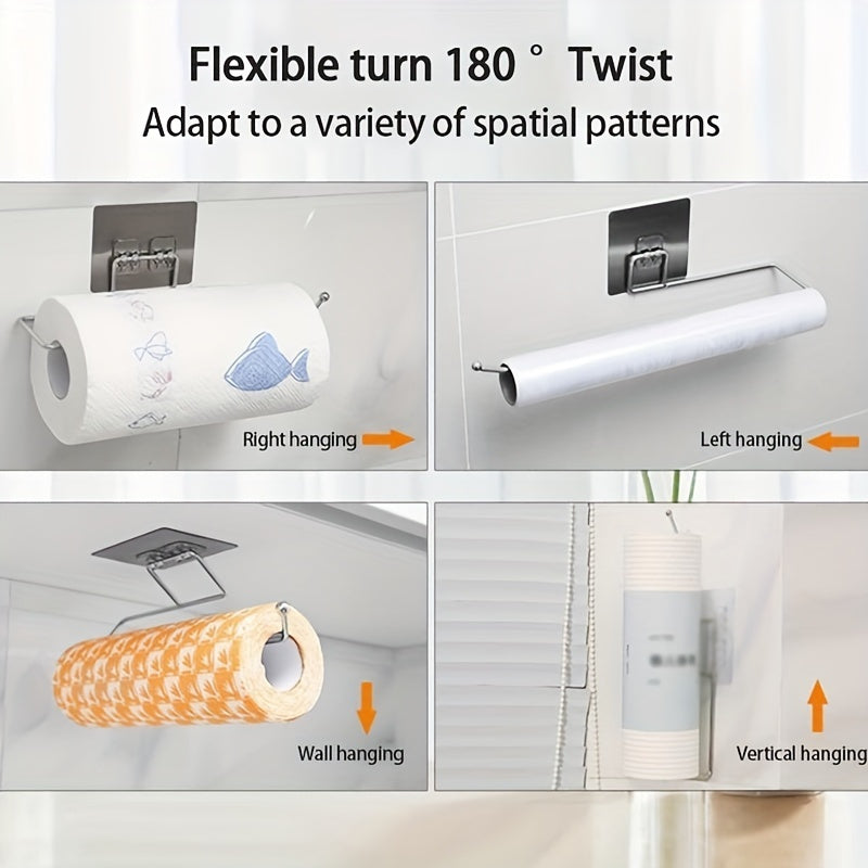 Stainless Steel Bathroom Kitchen Towel Hook Rack No Drilling