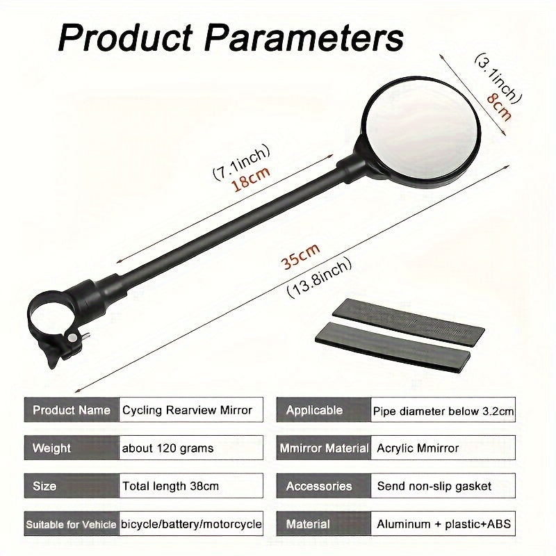 Unisex Stainless Steel Bike Mirror with 360° Flexible Hose Adjustable Side View Cycling Accessory for Ages 14+