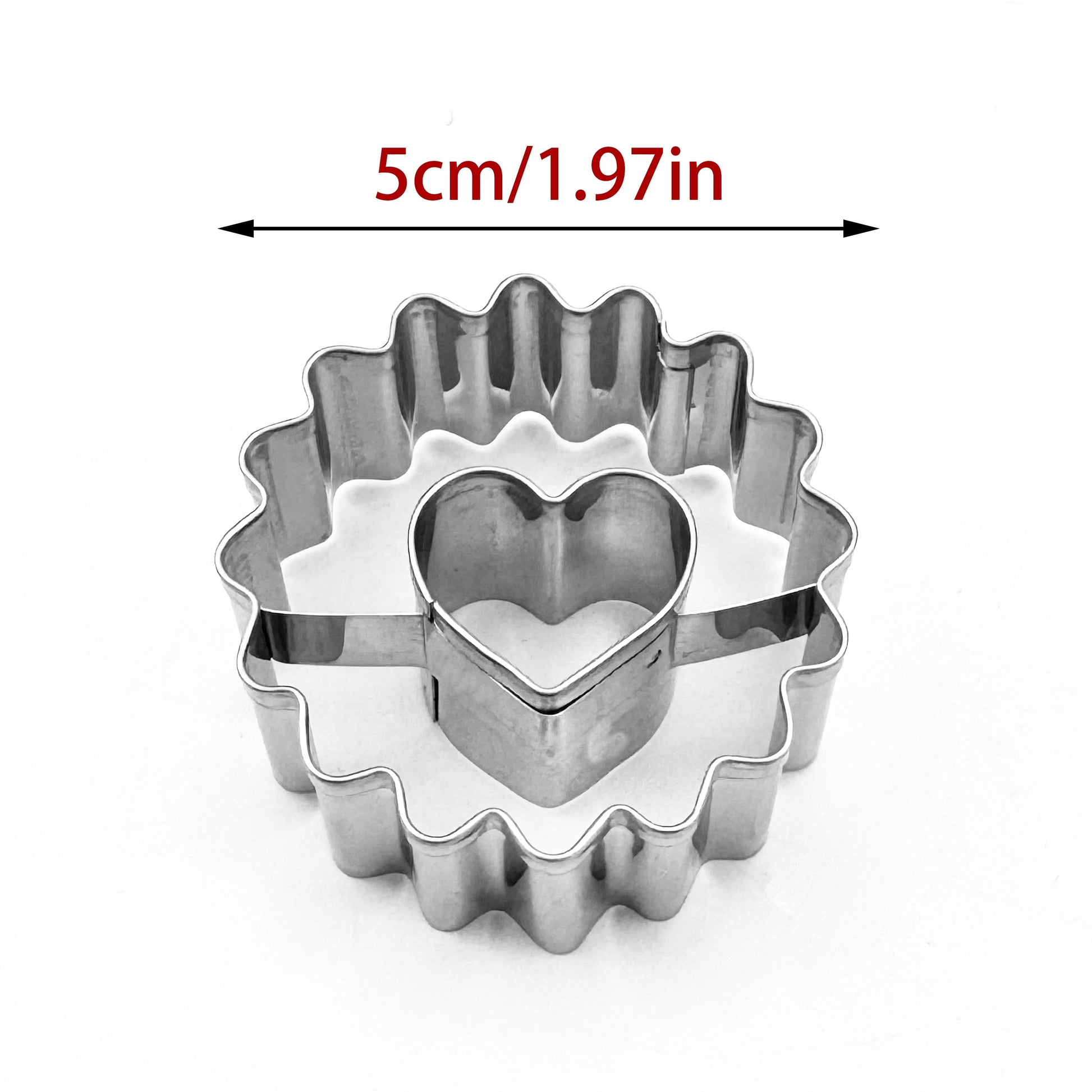 Stainless Steel Cookie Cutter Set Heart and Scalloped Edge Sandwich Molds for Baking 5cm