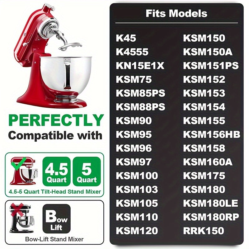 Stainless Steel Dough Hook for KitchenAid Stand Mixer 4.5 and 5 Quart Models