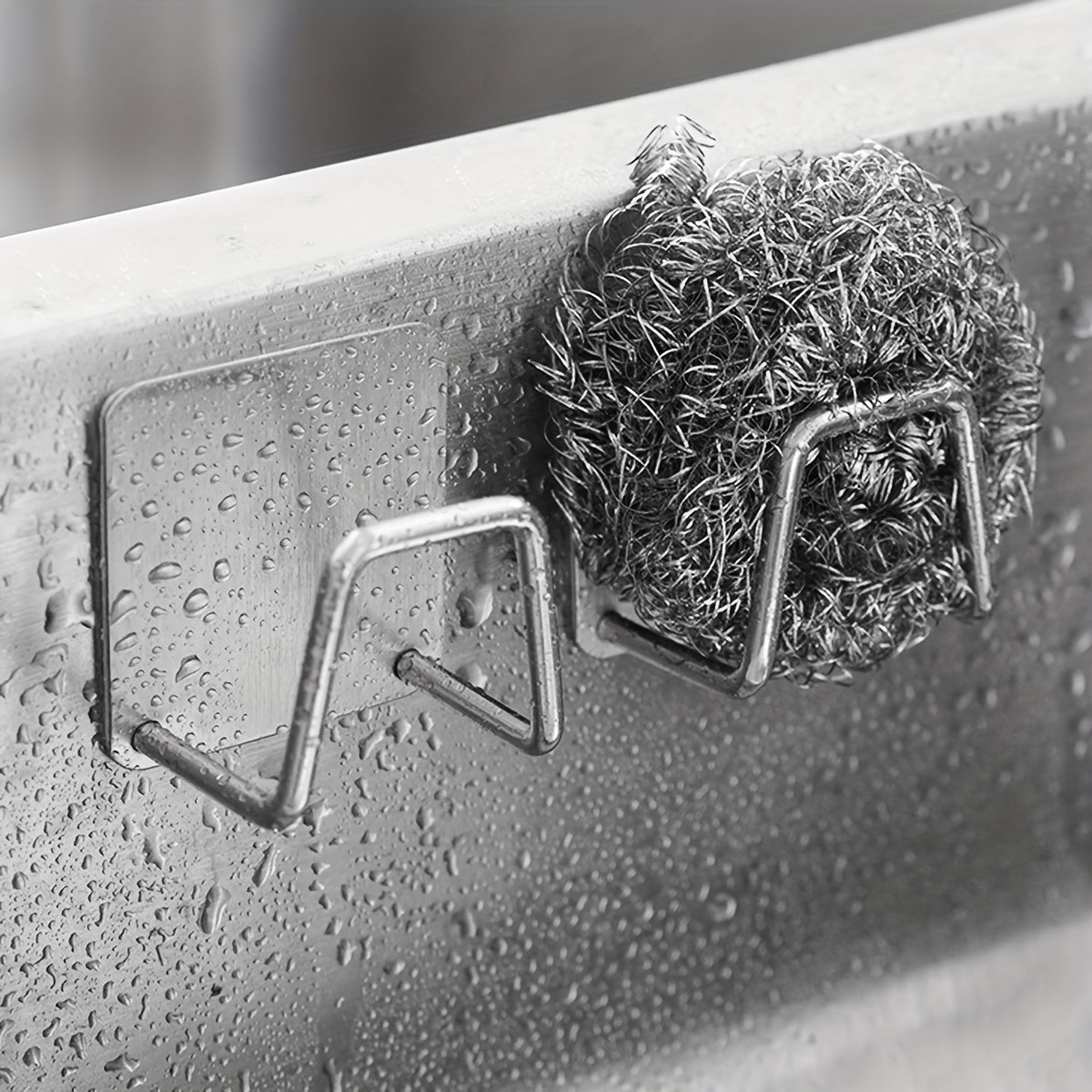 Stainless Steel Sponge and Scrubber Holder with Draining Hooks for Kitchen Bathroom